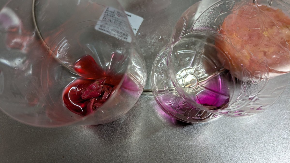 1週間以上漬けておいたラベンダーセージの紫と 30分ぐらい漬けただけのランタナのピンク。 ピンクが鮮やかな反面、 早くも紫が退色してきた気がする😅 #今日の手仕事 その2 #草木染 pic.x.com/HNlWo7ptVC