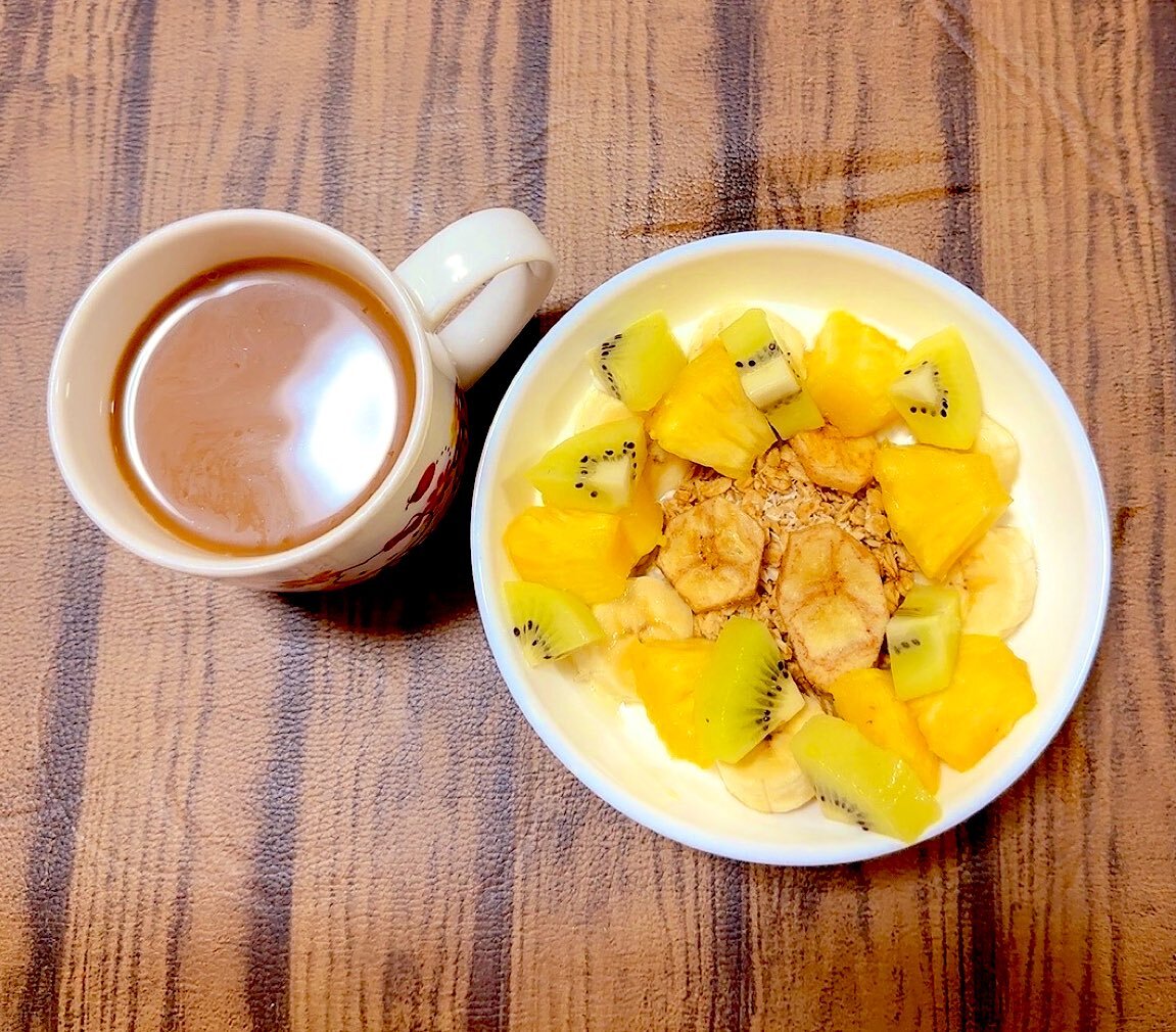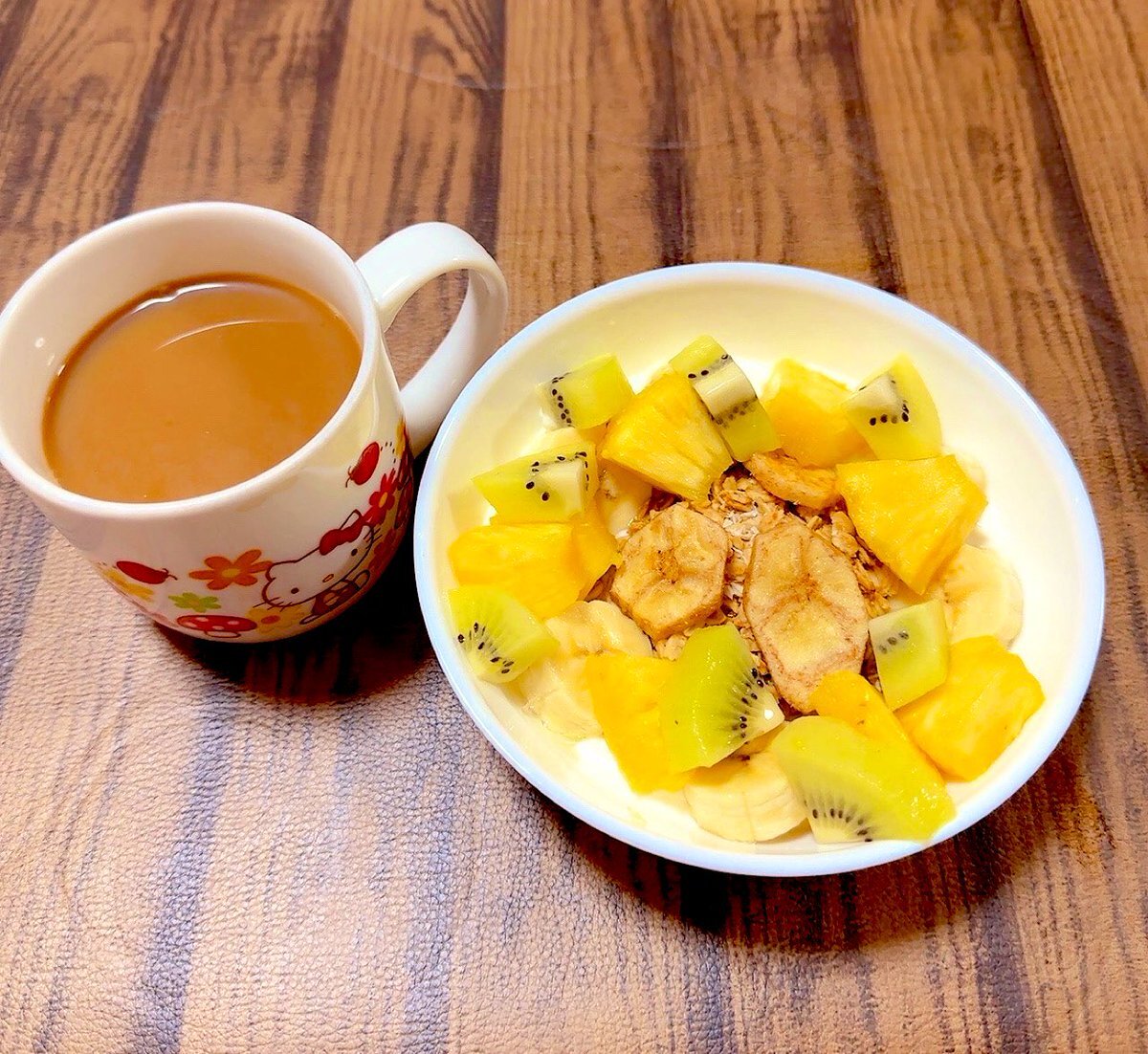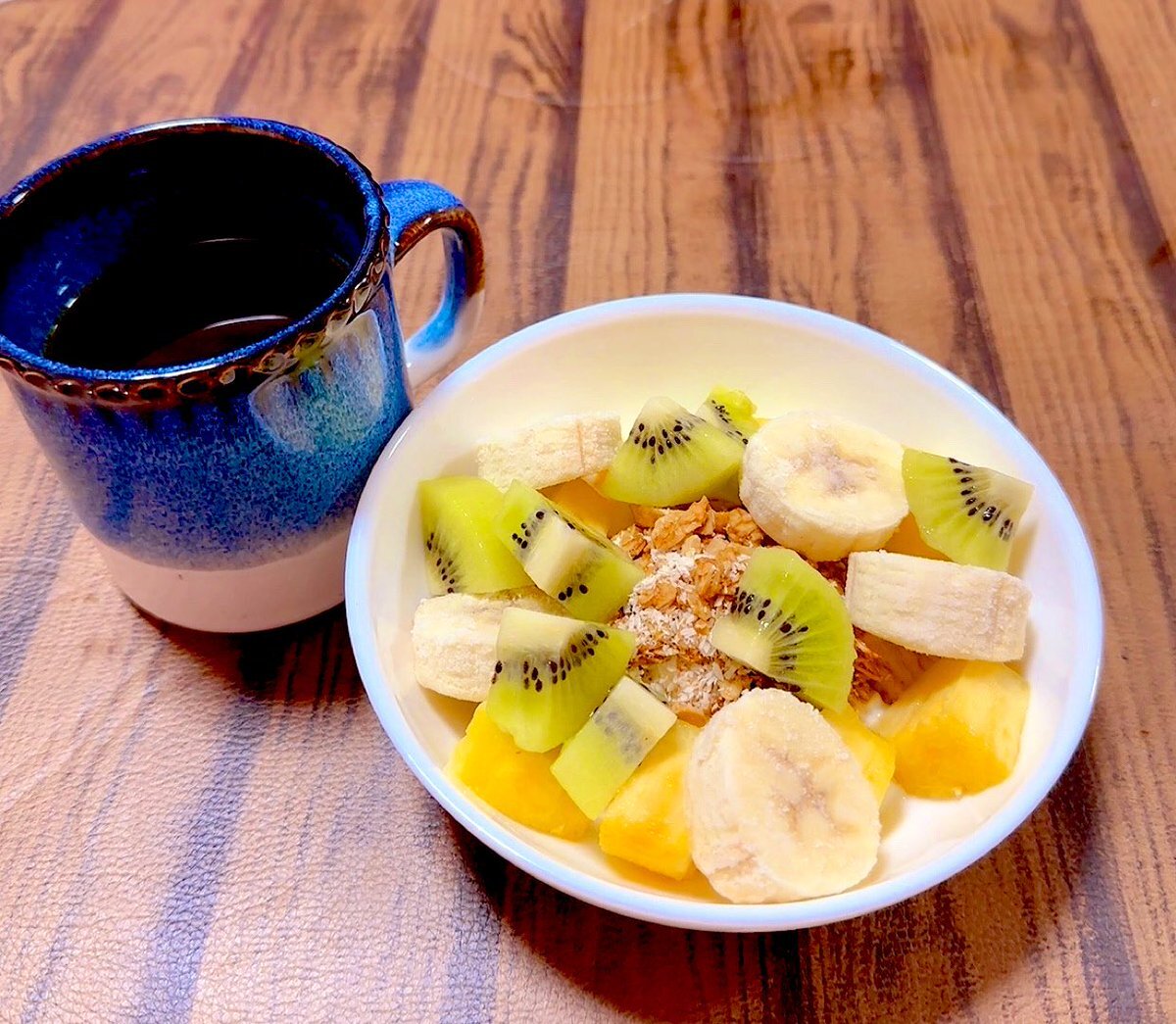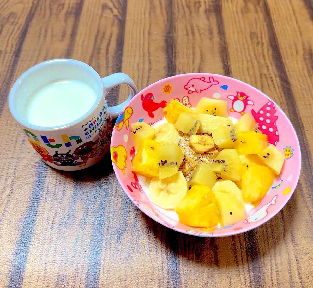 おはようございます 今日の朝ごはんです 天使ちゃんのご希望どおり ヨーグルト米麹グラノーラボウルの 朝ごはんです フルーツは、バナナ.キウイフルーツ. パイナップル 天使ちゃんは、酸っぱいというので ゴールドキウイにしました 今日も美味しく頂きました😋 #今日の朝ごはん #米麹グラノーラ pic.x.com/5fsOCum7UX