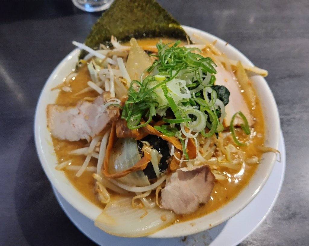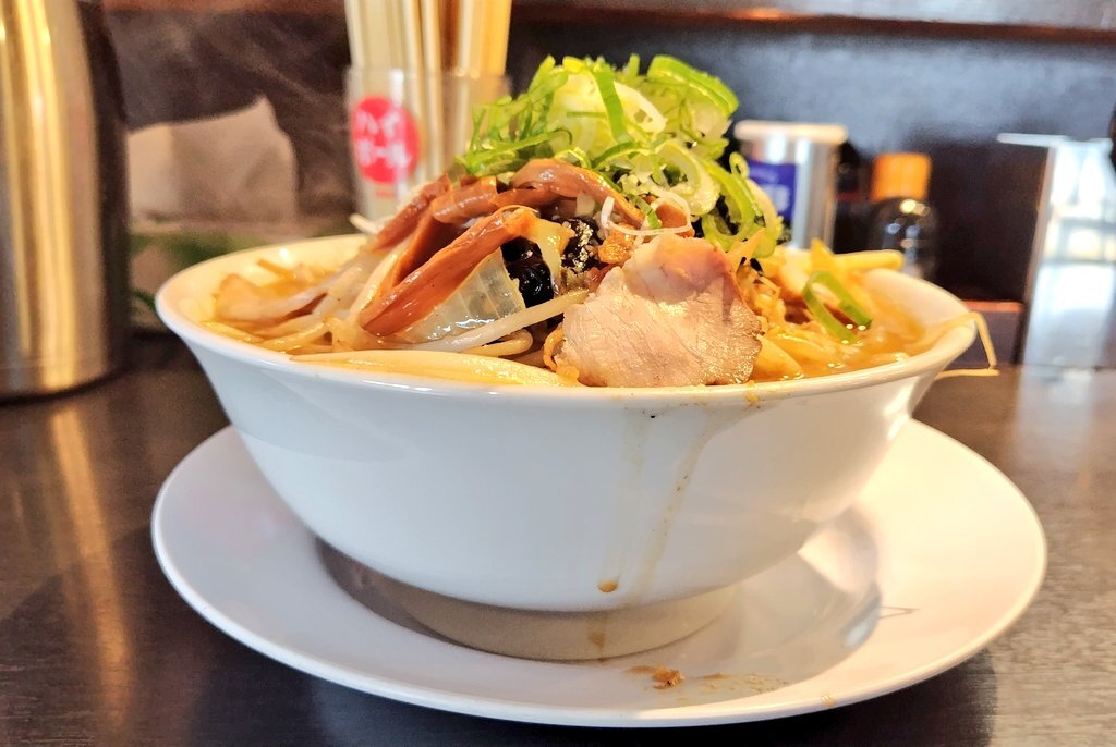 #今日の猛毒 濃厚野菜味噌¥1,250[ラーメン焼肉酒場 にくまる 新潟県長岡市] 焼肉屋のラーメン!もやし キャベツ 玉葱 人参 豚挽肉炒め。上に甘旨煮豚バラ肉 白葱 法蓮草 木耳 麺麻 板海苔。 甘過ぎない味噌のスープ ちょび背脂より炒め油が旨い。ごちそうさま!maps.app.goo.gl/BQp2X7pgkE94qJ… #ラーメン 122 pic.x.com/9wByLOtlKU