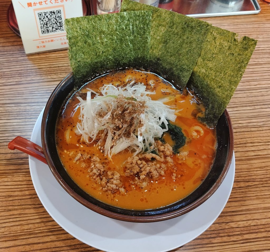 #今日の猛毒 濃厚味噌担々麺¥1,050(太め柔らかめ濃いめ)[清六家 北条店 茨城県つくば市] 花椒 白葱 法蓮草 板海苔 黒すり胡麻 豚挽肉 大豆は味噌由来か 人参はコンタミかな 麺は期待どおり 紅生姜ときゅうりの漬物が卓上にあり ごちそうさまでした〜 maps.app.goo.gl/13RFEnXNvkwzL8… #ラーメン #担々麺 123 pic.x.com/Fcicf1oqrm