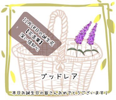 11月10日(月) おはよございます✨ お仕事の方は一緒に頑張りましょう💪 毎日が誰かの誕生日です🎂 お誕生日おめでとうございます㊗️ 今日の誕生花は 🪻ブッドレア🪻 花言葉は 「恋の予感」「あなたを慕う」 #今日の誕生花 #フォロバ100 pic.x.com/Z4olSETSgN