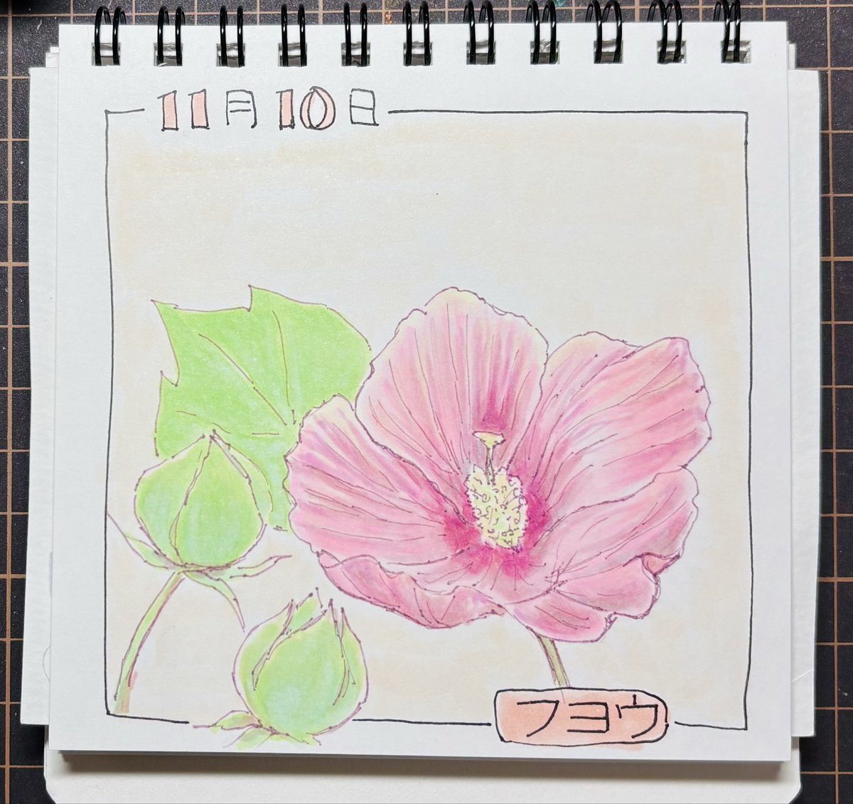 #今日の誕生花 芙蓉 よく見かける酔芙蓉は一日のうちで色が変わるようですが白とピンクが同時に咲いていて、見て楽しい花ですね✨️🌸 #コピック #一日一絵 pic.x.com/K5Zb7hpRcp