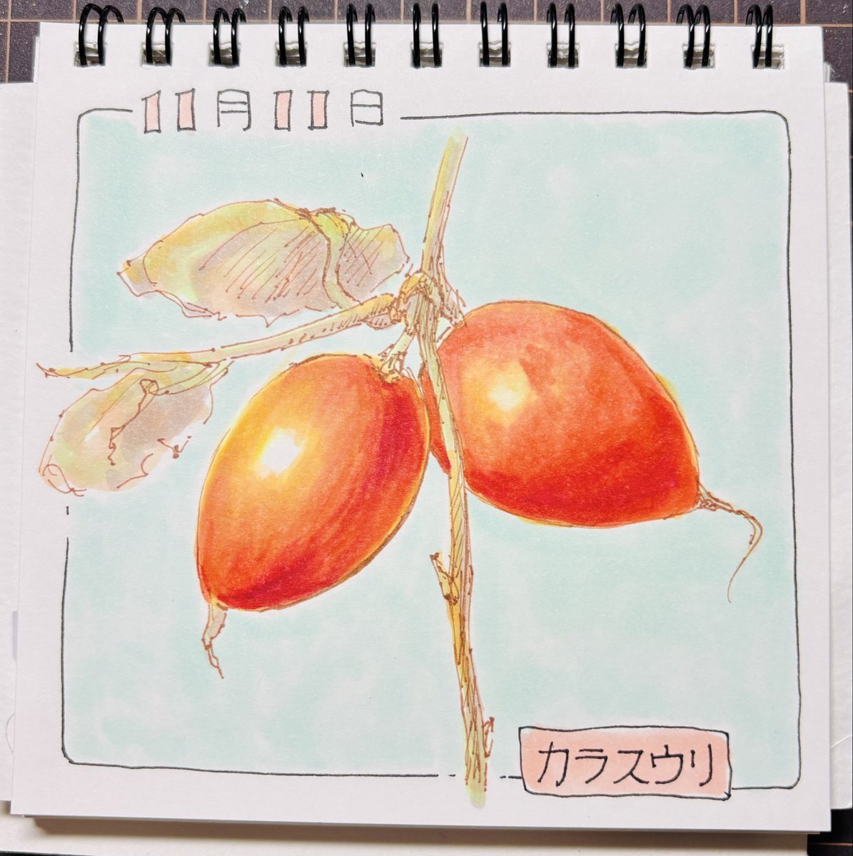 #今日の誕生花 カラスウリ 秋らしいのが来ましたね〜🍁🍂✨️ 以前、水彩で描いたものと同じ構図です #コピック #一日一絵 pic.x.com/REmVBFEEAs