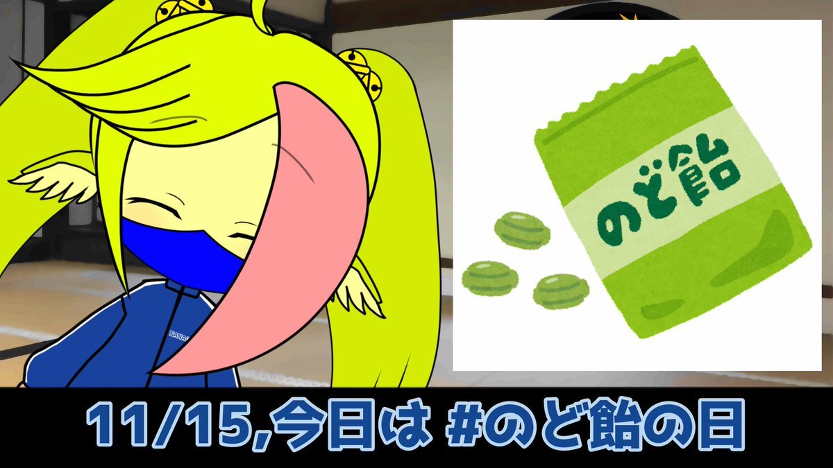 こんナナ~! #今日はNANA何の日CANA? Laps05! 11/15は #のど飴の日 いい(11)ひと(1)こ(5)えの語呂合わせが由来。 カンロ株式会社様が制定。 みんな声出していこう!NANACOM-Rチャンネル! [チートバグ動画]ロックマンエグゼをチートバグで遊ぶyoutu.be/2jeBIC2ntPU@Yo…より #今日は何の日 pic.x.com/B8rYSsuMGa