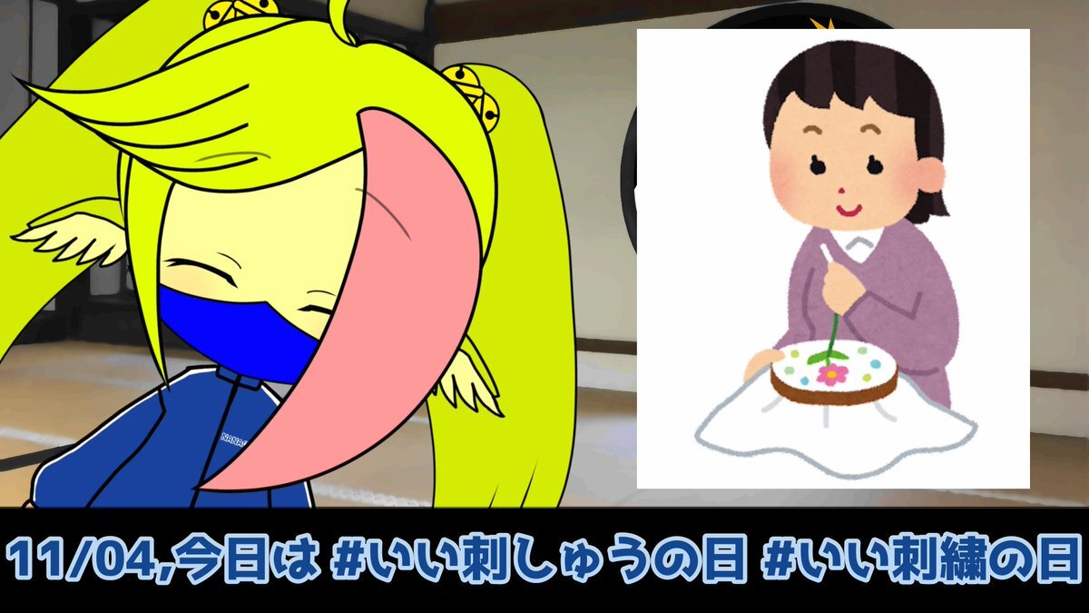 こんナナ~! #今日はNANA何の日CANA? Laps05! 11/04は #いい刺しゅうの日 #いい刺繍の日 いい(11)し(4)しゅうの語呂合わせが由来。 日本ジャガード刺繍工業組合様が制定。 しゅしゅしゅ!NANACOM-R Ch! [チートバグ動画]ロックマンエグゼをチートバグで遊ぶyoutu.be/2jeBIC2ntPU@Yo…より #今日は何の日 pic.x.com/kXgEB0VnxM