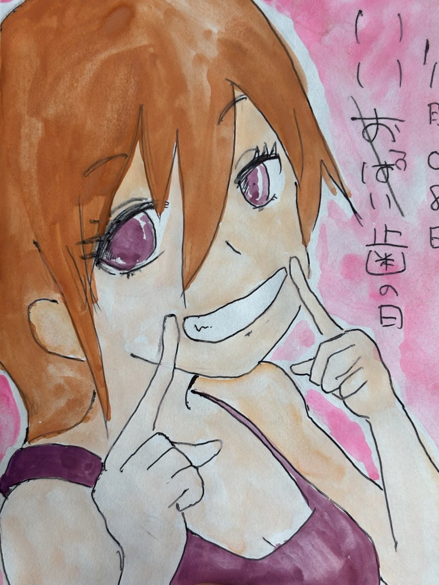 今日はなんの日? 今日は『いい歯の日』だそうです^ - ^ opの日でもある(笑) 好みで言うなら小さい方が…(笑) #イラスト #art #一枚絵 #趣味絵 #一羽 #今日はなんの日 #筆ペン #ふでぺん #水彩 # #文字 #今日 #今日も一日頑張りましょう #いい歯の日 pic.x.com/MIF9RTXIFT