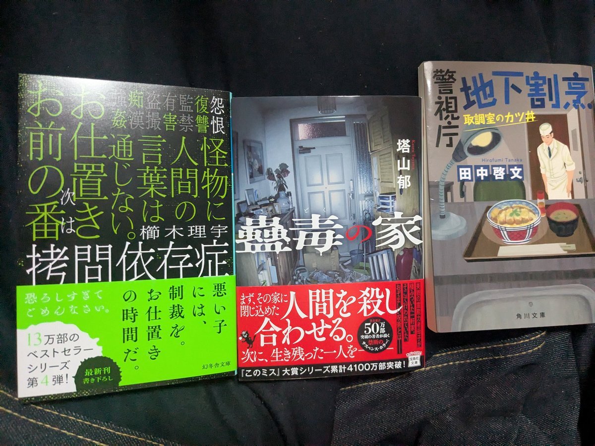 #今日買った本・届いた本を紹介する とにかく拷問依存症!とに拷!ですよヾ(*´∀`*)ノ くぉれが欲しくて本屋さん行っちゃったら買うよね本(՞ ܸ. .ܸ ՞) #拷問依存症 #蠱毒の家 #警視庁地下割烹 pic.x.com/Y3y2I1qUx7