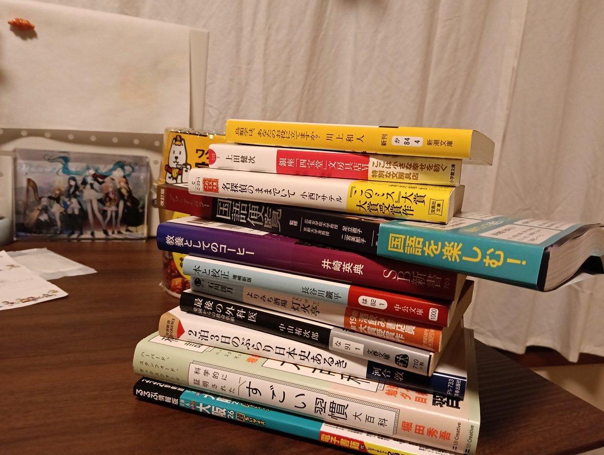 ブックオフいったら今日明日限定で本20%オフ…! そしてJREポイント19倍というので色々買ってしまった…!美術館のは母親頼みだけどしばらく本には困らん。 #今日買った本・届いた本を紹介する pic.x.com/qVFtAm8VNu
