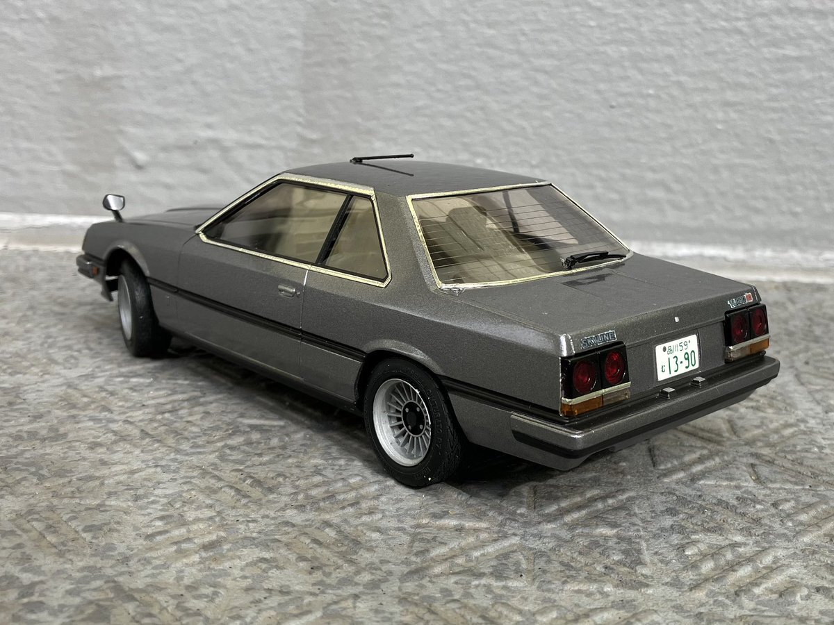 #今月作ったプラモ晒そうぜ メルカリで買ったジャンクのタミヤスカイラインブラックスペシャル。パーツは揃っていたのでGT系にレストア。ホイールはフジミ製を加工。 pic.x.com/2lAp5stNLy