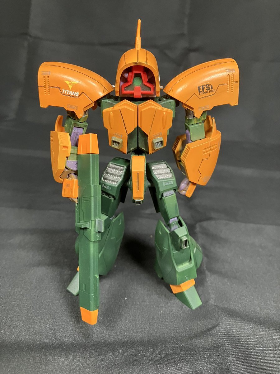 RE/100 ディッジェ完成 顔のマズルを短縮、裏設定を意識して頭部内部マスクをガンダム風に小改造 フロントスカートを延長してサイドとラインを合わせたくらい #今月作ったプラモ晒そうぜ #RE100 #ガンプラ pic.x.com/yl5e96RMo2
