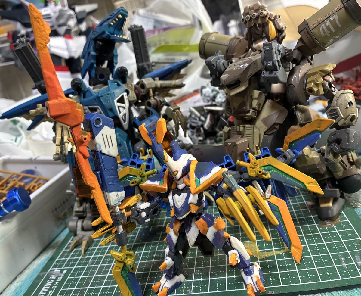 #今月作ったプラモ晒そうぜ 10月は簡単フィニッシュで1体……クシャは間に合わなかった……久々にゲームにハマってたから仕方ない…… 11月はクシャトリヤ完成させて、もう1体くらい筆塗りして組めるかな〜という腹づもり pic.x.com/rfOGmaRngz