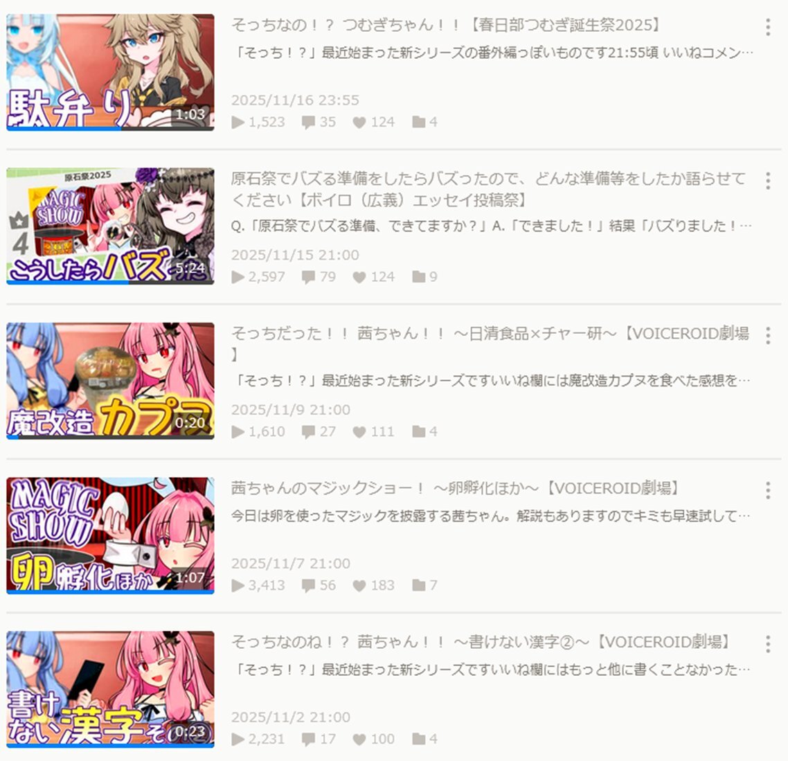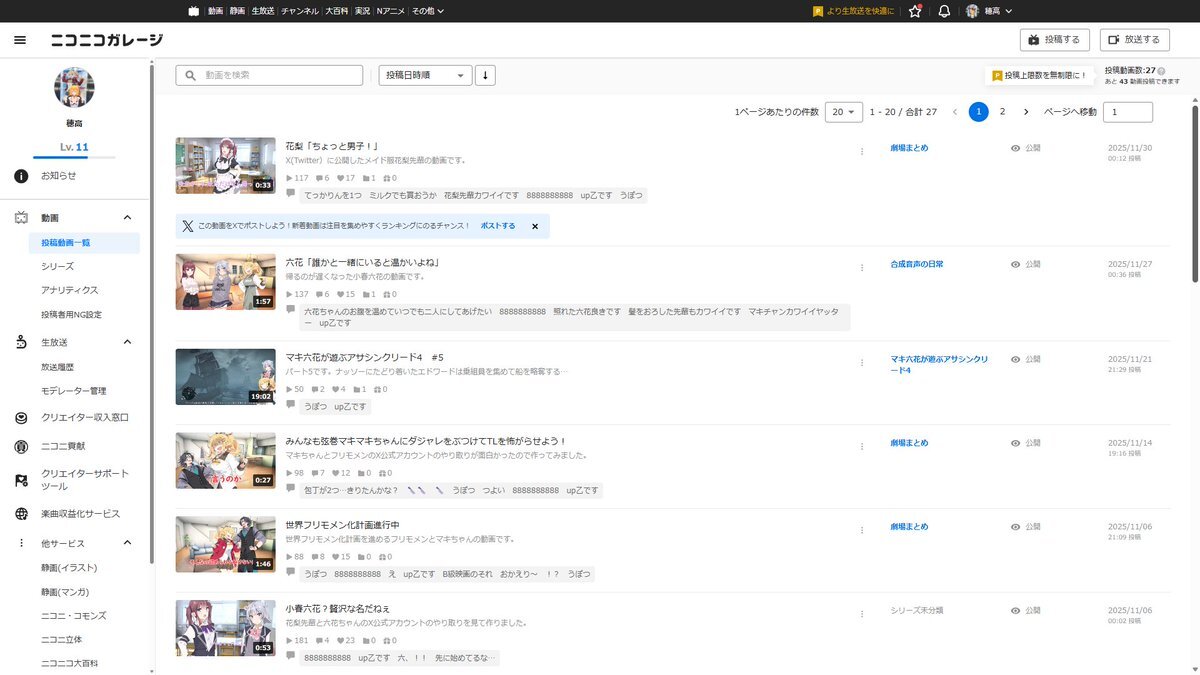 5本 まだ寝てないから11月です 10月は1本だけだったからかなり増やせたね 誕生日と投稿祭だったからだけど あとニコ生も9回(+CAIND3回)してたらしい #今月投稿した動画を晒そう pic.x.com/fRXDfzIJjw