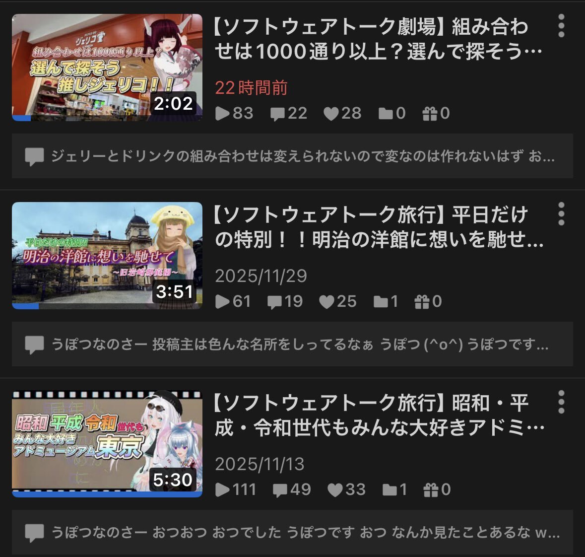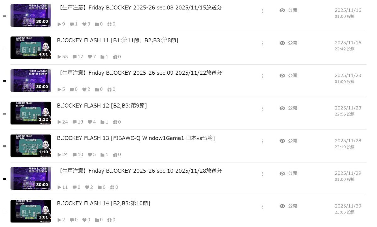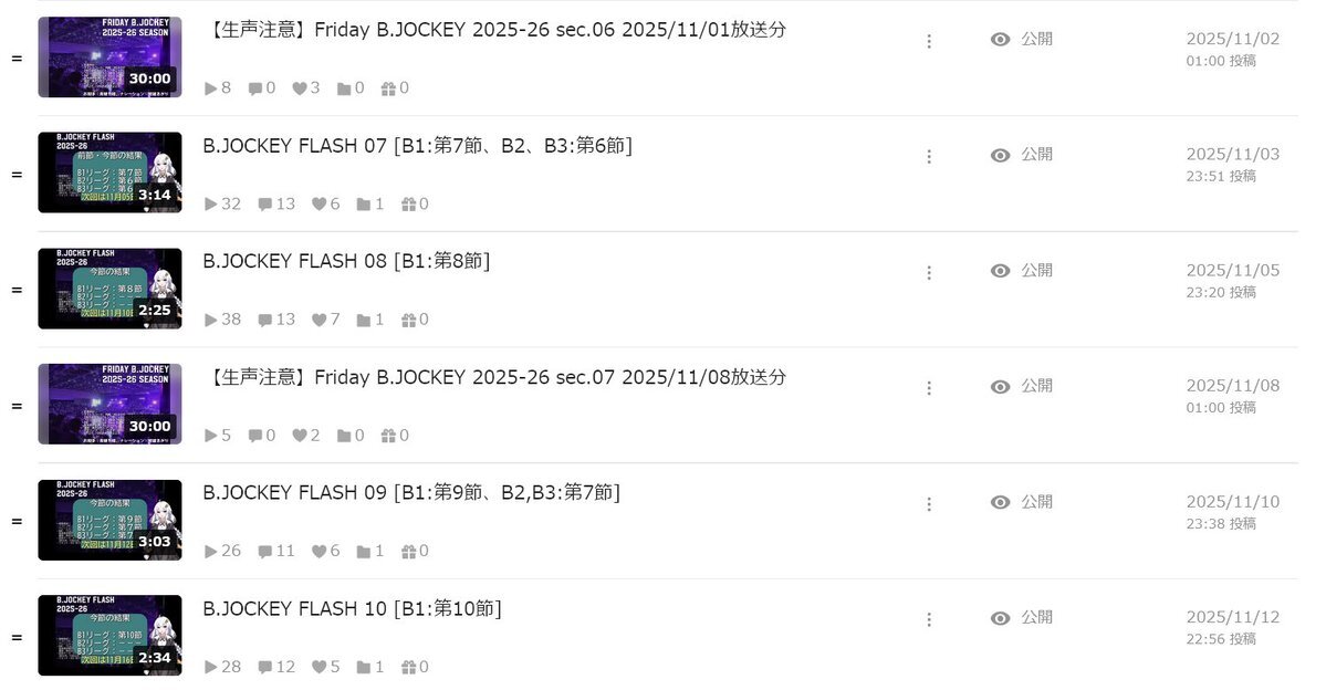 #今月投稿した動画を晒そう ポンコツ奇行×1、B.JOCKEY FLASH×7、B.JOCKEY×5 12月は、川を巡る散歩×2(徒歩旅行祭含む)と雑多な動画×1(歌もない歌謡曲2025)の予定。。。 pic.x.com/aKCinxhkJd