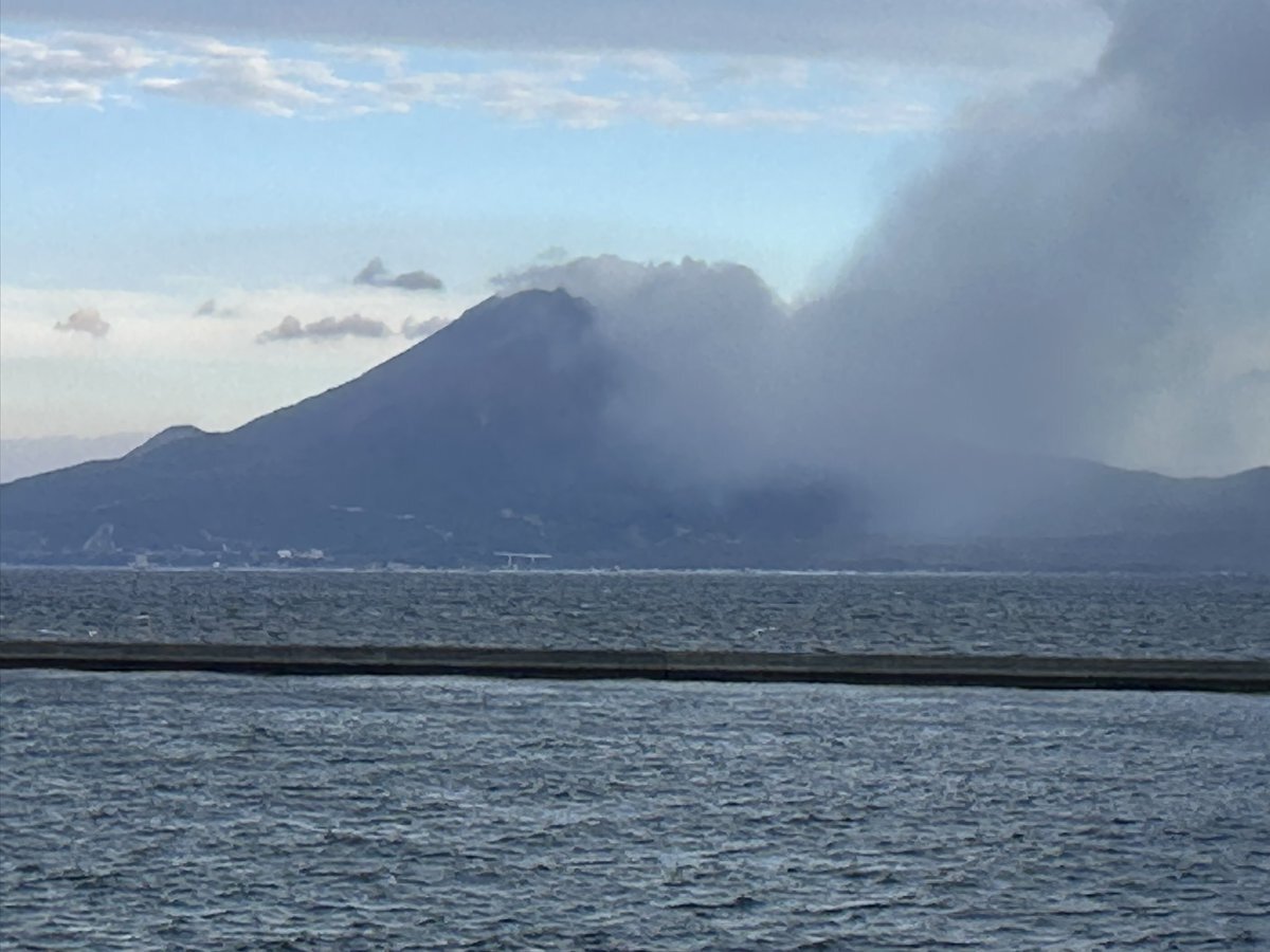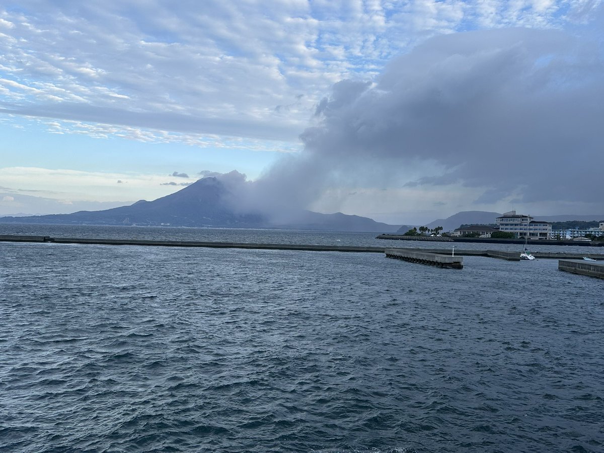 今朝の桜島 予定変更して垂水からフェリー⛴️に乗りました。 甑島フェリーキャンセル待ちです。 #今朝の桜島 #九州ツーリング pic.x.com/yueZExB2pz