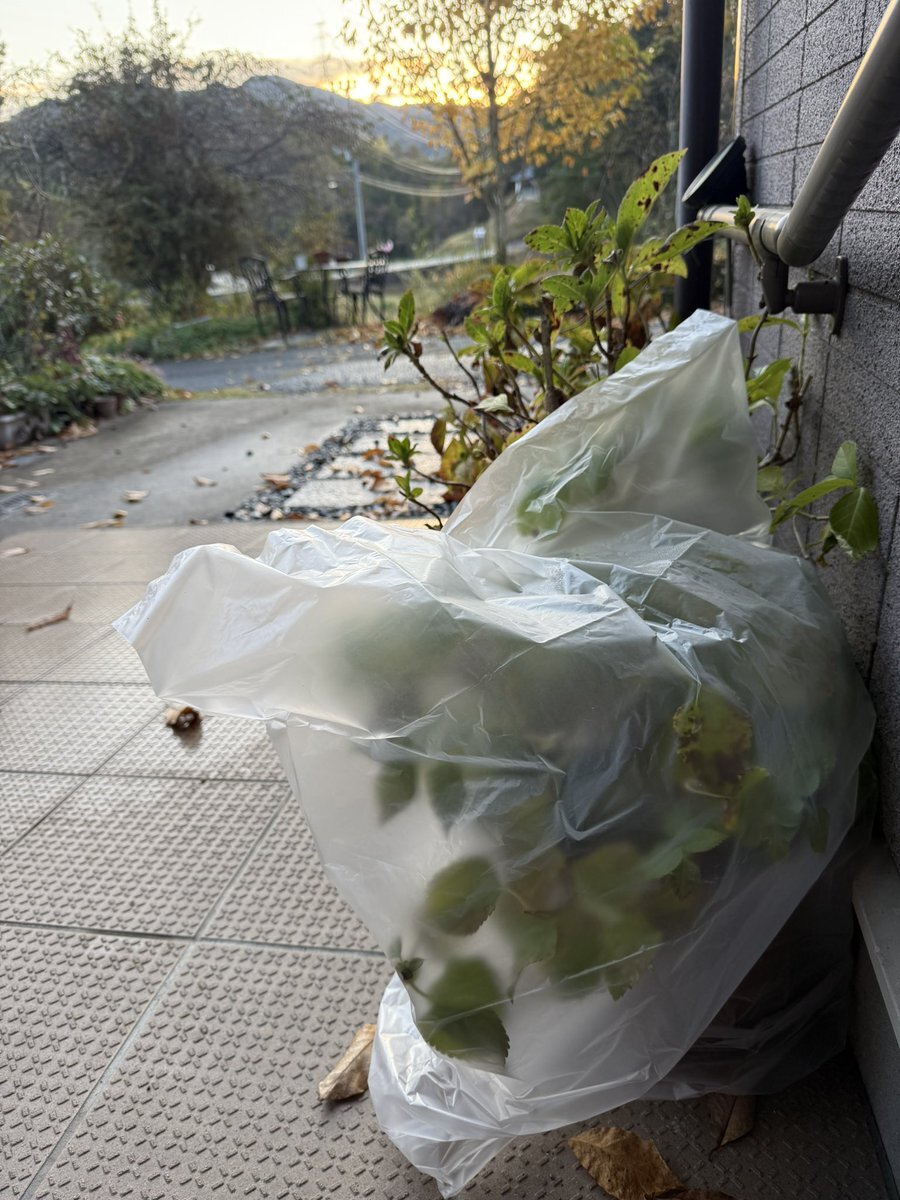 #定点観測 #今朝の気温 #寒さに耐える 11月19日(水)🌤️ おはようありゃんす🌄 この冬最低気温の我が家 5℃です そんな中で雑草のシオンが可憐です そして夏の花達にビニールを被せて越冬準備をしました 寒くても今日も ガンバ です👍 pic.x.com/IuGcMuLcPK