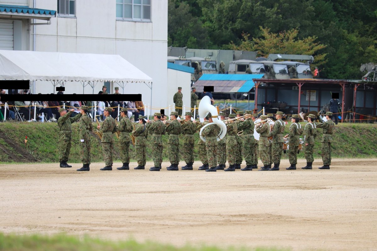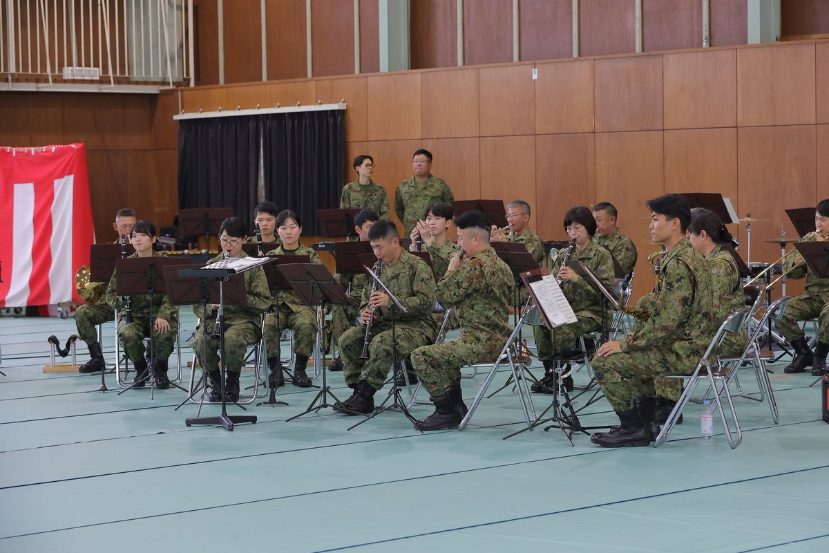 記念行事の思い出、第3音楽隊編です!音楽隊は、観閲式から記念行事に参加し、体育館で演奏会を行いました。皆さんはどの曲がお気に入りでしたか? ①ドラゴンクエスト ②HOT LIMIT ③かけっことびっこ ④メドレー ⑤マツケンサンバ #第3音楽隊 #記念行事 #今津駐屯地記念行事 #CAMPIMAZU pic.x.com/pARIbUMQnx