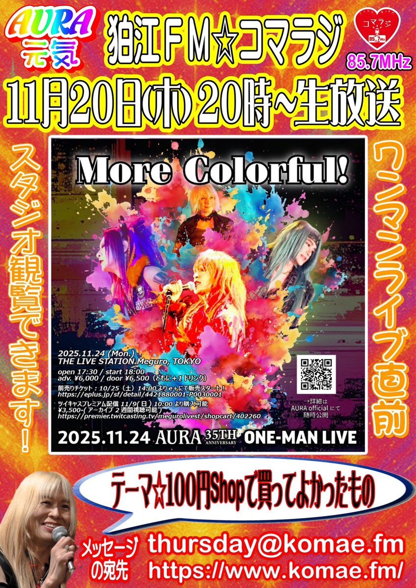 毎週木曜20時「AURA元気」生放送!  今週のテーマ「100円Shopで買ってよかったもの」 「AURA元気」宛 thursday@komae.fm へお送りください。 コマラジHP komae.fm または、レディモにて 全国どこからでも視聴可。❣️ 🪟番組観覧も出来ます。 AURA's Voice Log【公式】チャンネル