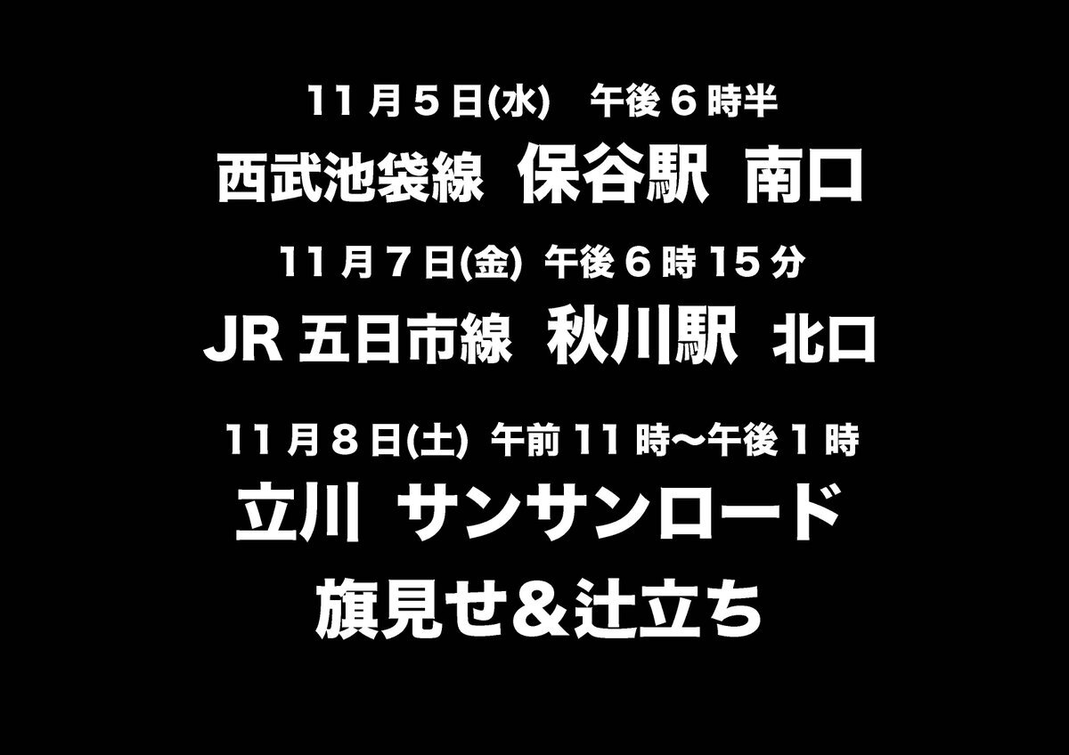 #冨田いたる 一人辻立ち&旗見せ #今週の予定 11/5(水) 保谷駅18:30 11/7(金) 秋川駅18:15 11/8(土) 立川サンサンロード 11: 00〜13:00 お気軽にお越しください x.com/itaru1964/stat…