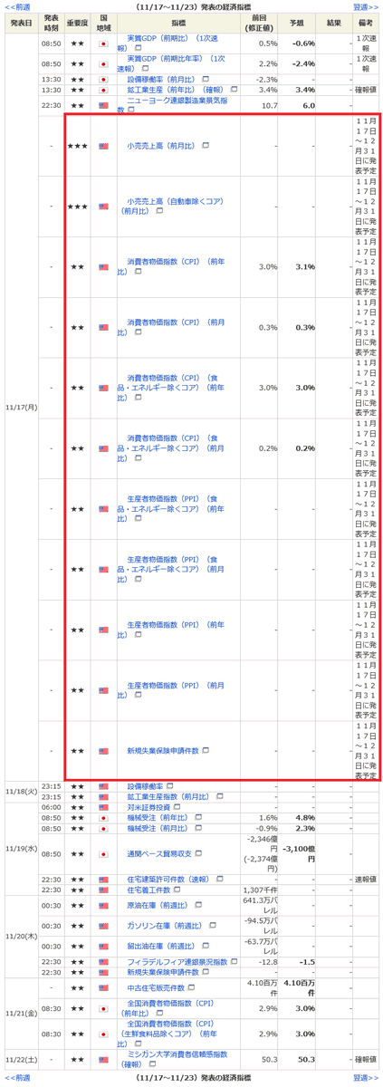 今週の予定。もはや小売売上高もCPIもいつ発表されるか分からない状態なんすね。暗中模索。 日本のインフレ率はまた3%台ですか。あんなに実現しなかったインフレも実現したらしつこい。 #投資 #今週の予定 pic.x.com/9UvE0lW0o5