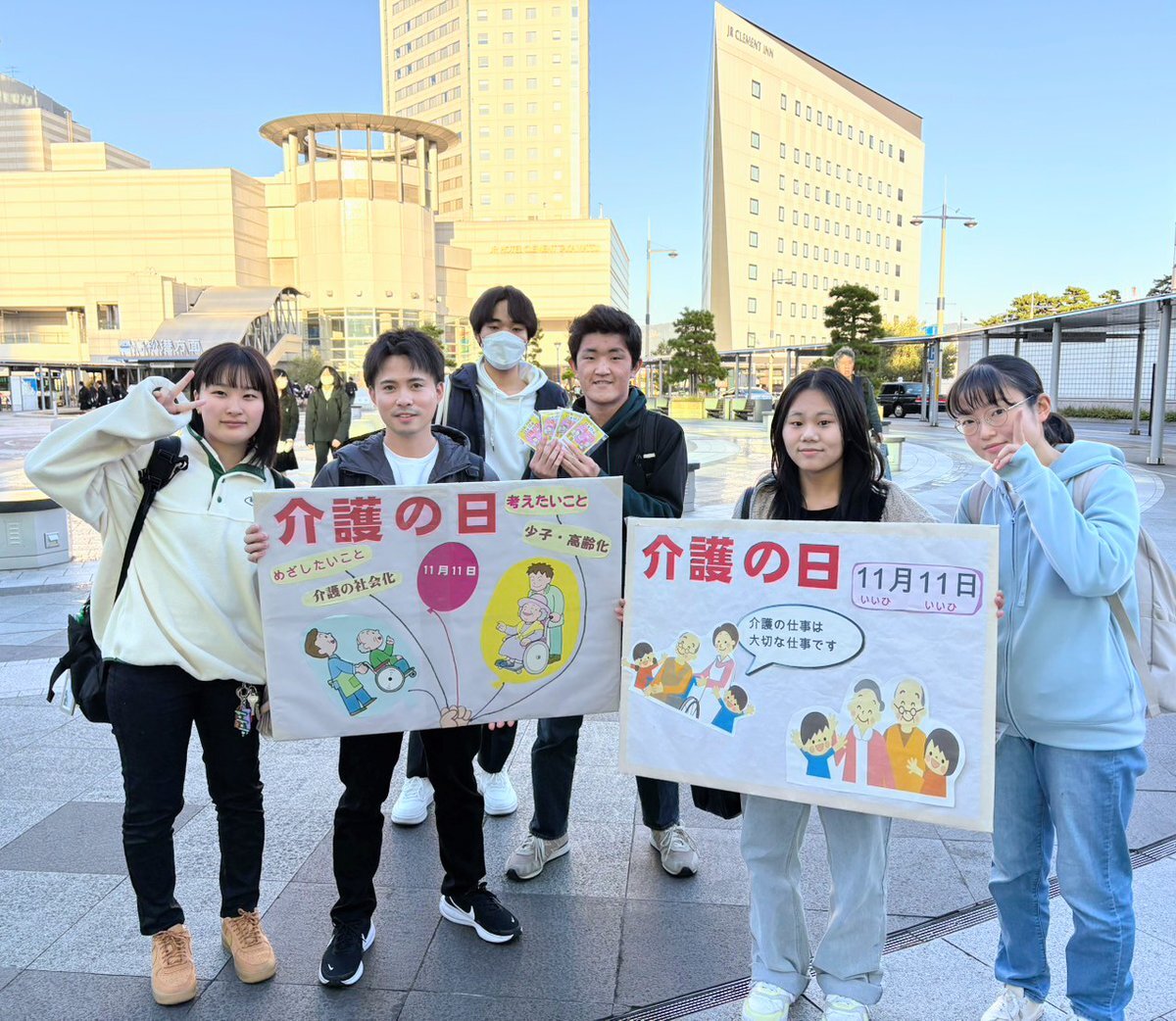 \\11月11日は介護の日// 介護福祉学科が「11月11日介護の日」の啓発をJR高松駅と学校近隣の高松市上之町郵便局で実施🎵 毎年恒例の手作り品を配布しました💕 受け取ってくださった皆様、ありがとうございました! #介護の日 #介護福祉士 #四国医療福祉専門学校 pic.x.com/CTHI6EkvEC