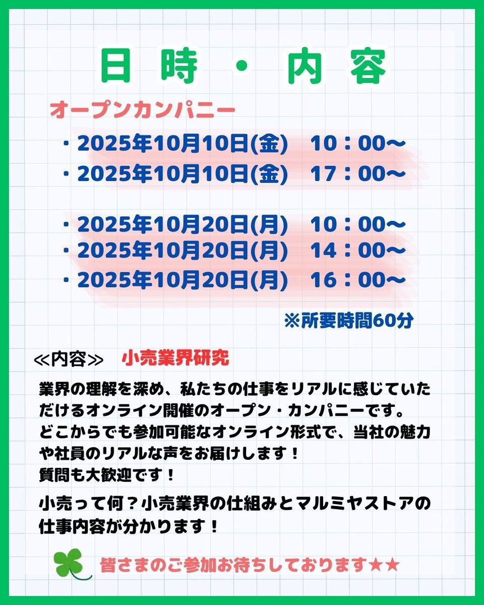 📣📣10月開催 オープンカンパニー参加学生募集中✨🙏✨ 【日程】 10月10日(金) 10月20日(月) ↓↓↓申込はこちら マイナビ2027 job.mynavi.jp/27/pc/search/c… #27卒 #28卒 #29卒 #仕事体験 #オープンカンパニー #就活準備 pic.x.com/g075l7iXx6