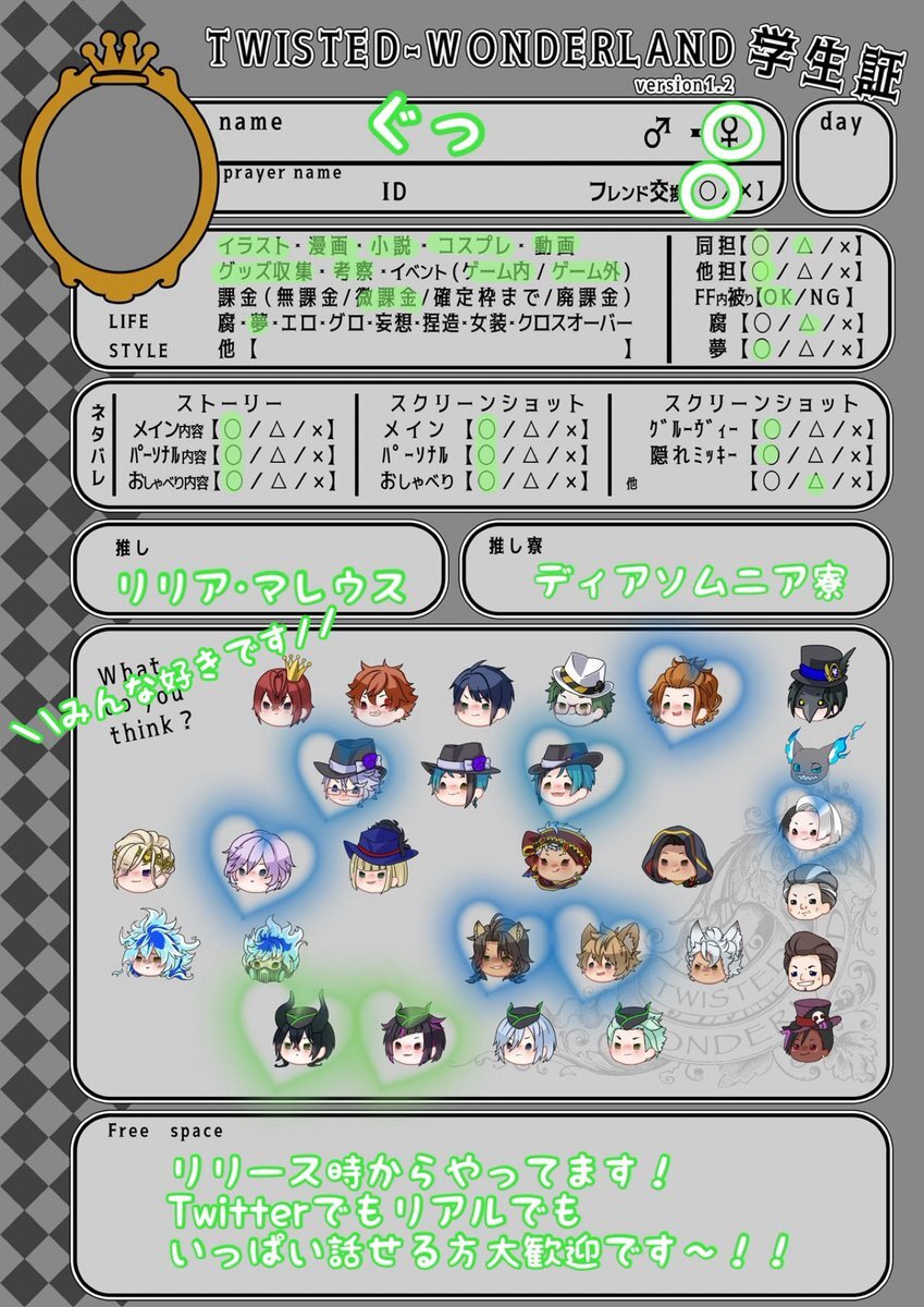 🏷𓂃𓈒𓏸︎︎︎︎ 同担◎ 他担◎ 他界隈◎ lit.link/guuuuu_1195 リトリン更新しました。 RP or ♡ で気になった方お迎えさせていただきますʚ💚ɞ #ツイステ好きさんと繋がりたい #ツイステ学生証 #にじさんじ好きさんと繋がりたい #他界隈オタクさんと繋がりたい pic.x.com/cwY0nQBWYp