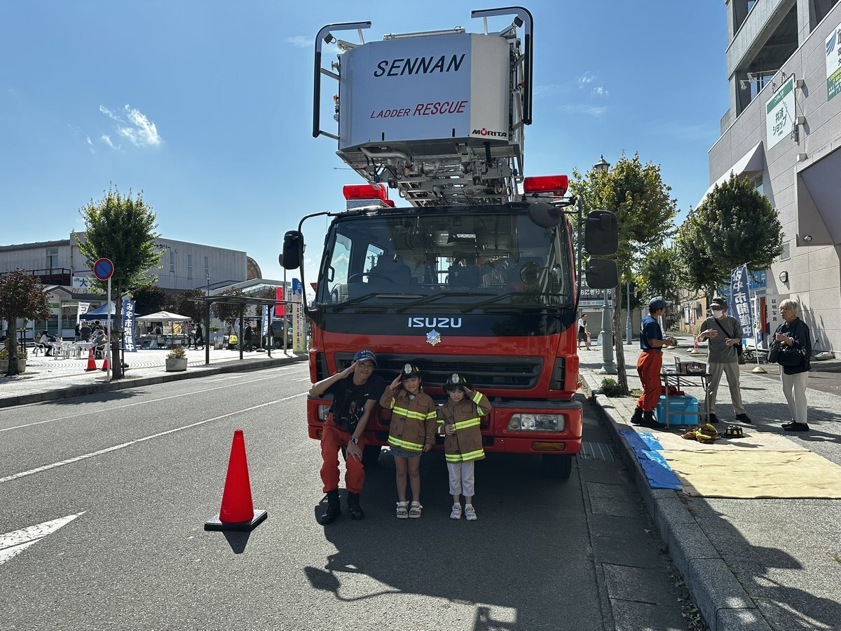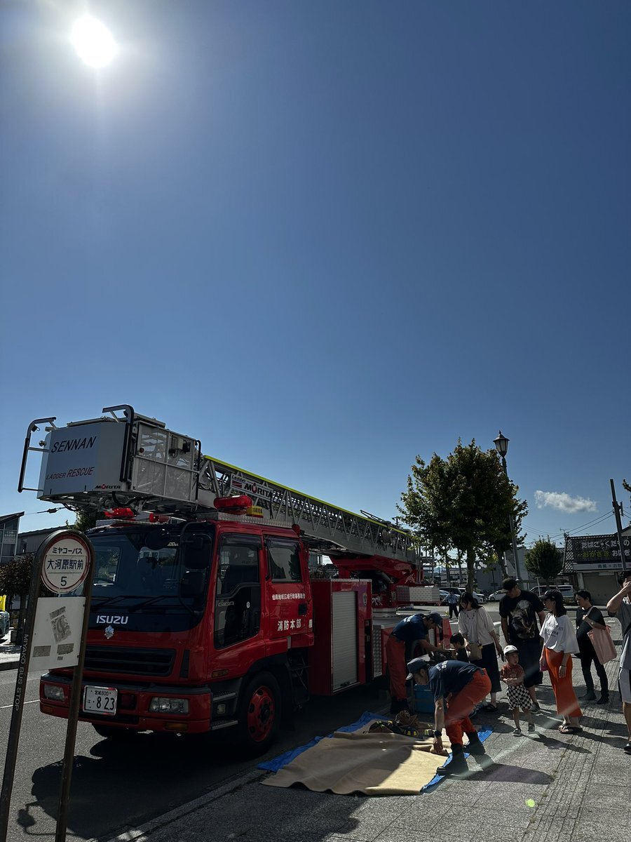 【大河原消防署】 大河原町内で開催されたイベントの『みや市』に大河原梯子1が参加し、火災予防広報を実施しました。ご来場し、梯子車を見学していただいた皆さん、ありがとうございました。 #仙南消防本部 #仙南消防 #訓練 #消防士 #救助隊 pic.x.com/CSGXugkwKO