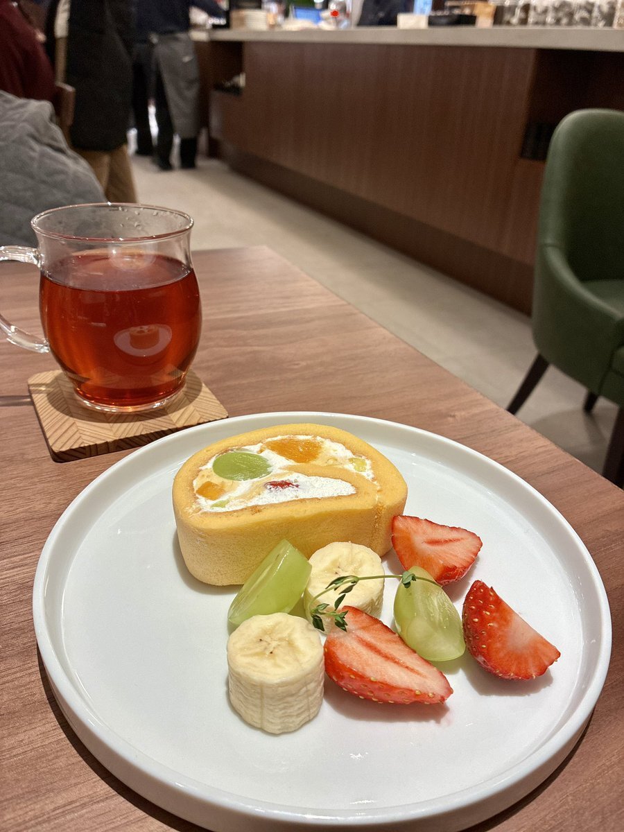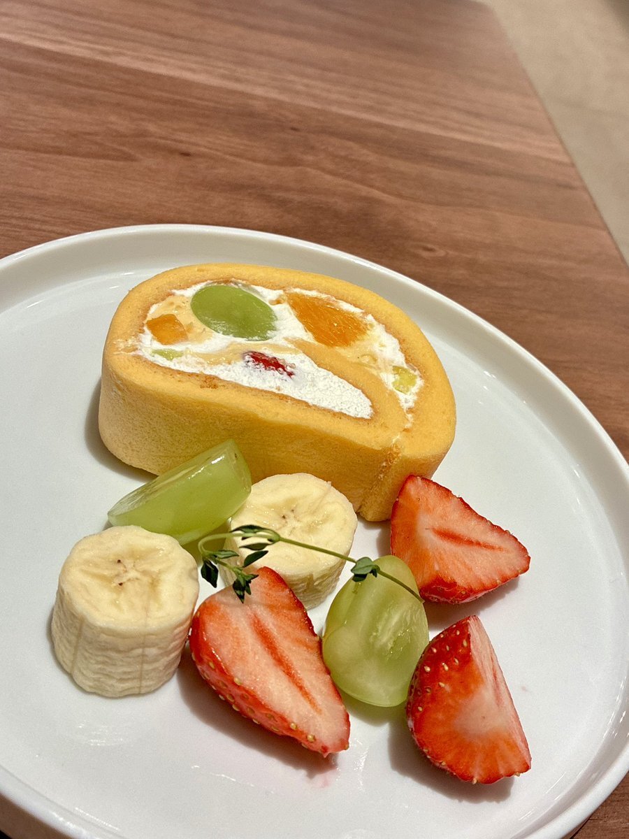 仙台でフルーツと言えばのイタガキ 昨日オープンしたカフェで2日間限定のお得なセット食べられた〜😋 甘酸っぱいフルーツが入ったロールケーキと季節の甘いフルーツ🍓🍌幸せ でも照明の関係で上から撮ると影が😭 待ち時間は益田ミリさんをのんびり読んでました #仙台カフェ #ITAGAKIFRUITSLOUNGE pic.x.com/QNcEzFdwd3