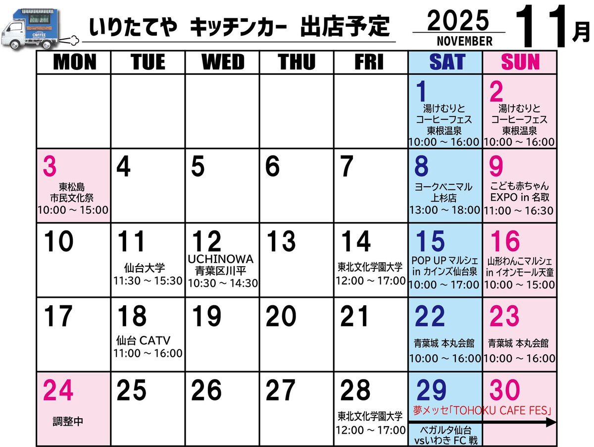 11月の営業予定と出店予定です 月初の飲み比べに始まり 月末の飲み比べで終わるw コーヒーフェスにぜひご来場下さい #自家焙煎珈琲店 #仙台カフェ巡り #キッチンカー pic.x.com/Ef4aBRidvA