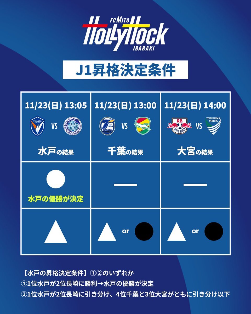 / 今週日曜、J2頂上決戦!⚔️ \ 水戸ホーリーホック 明治安田J2リーグ 第37節での J1昇格決定条件をチェック✅️ 水戸は勝利すればJ2優勝が決定!🏆️ @hollyhock_staff #Jリーグ