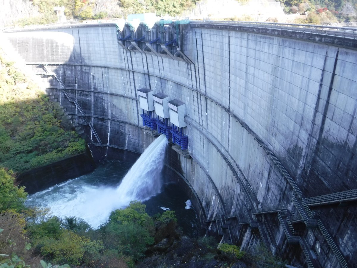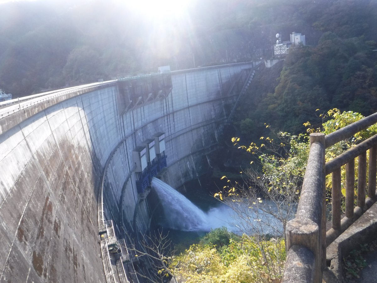 現在、#矢作ダム コンジットゲートからの #代替放流 を実施しています。 晴れの日でも #ゲート放流 が見られるチャンスです。お出かけの際は、周辺の紅葉スポットとともに矢作ダムにお立ち寄りください。 #矢作川 #豊田市 #恵那市 #放流 #紅葉 pic.x.com/IGukvQDD6G x.com/mlit_yahagi/st…