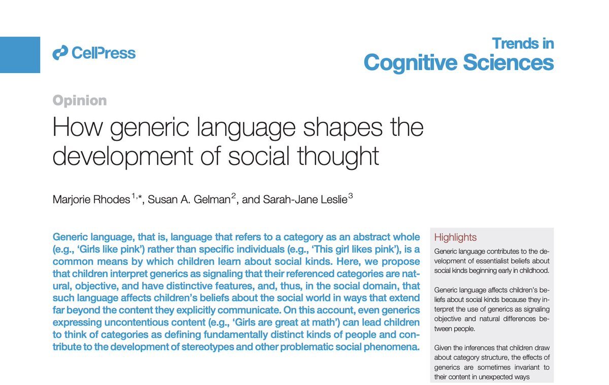 「主語が大きい」言葉は、子どもの考え方まで変える 「女の子はピンクが好き」と聞くと、子どもは「たまたまそういう子が多い」ではなく、「女の子はそういうもの」と信じやすくなる。