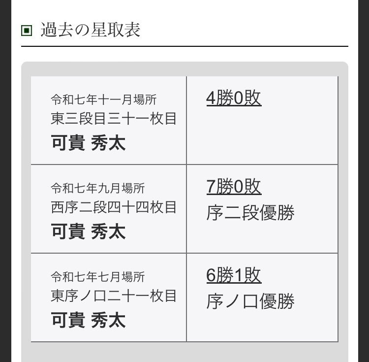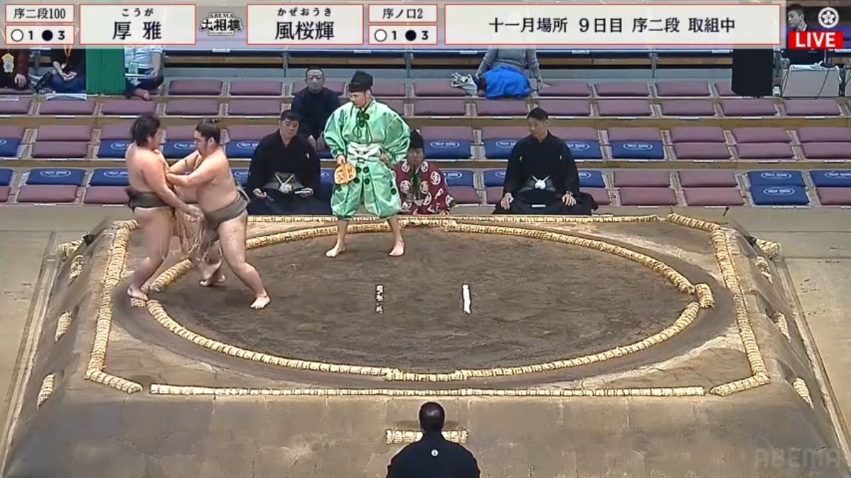 今日は三日目以来朝から相撲が観れる🥹取り組みさらいましたが、序ノ口優富士さん、序二段髙原さん、柾富士さんの無敗勝ち越しの死守をまずは祈りますーー!可貴さんも相変わらず強いーー入門してからまだ一敗しかしてない! #令和七年十一月場所九日目 pic.x.com/jLR1kh3sWp