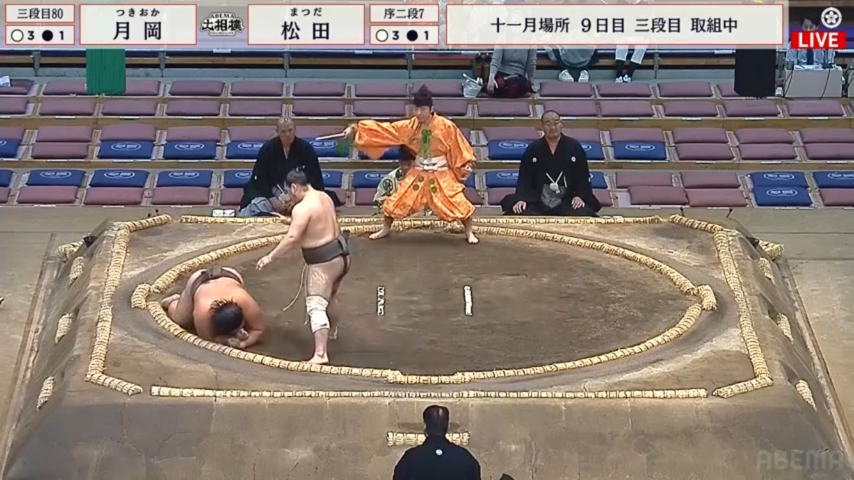 月岡さん白星🌟 勝ち越しっっ🔥🔥🔥 #令和七年十一月場所九日目 pic.x.com/udvfR8dcnn x.com/sumoooosumoooo…