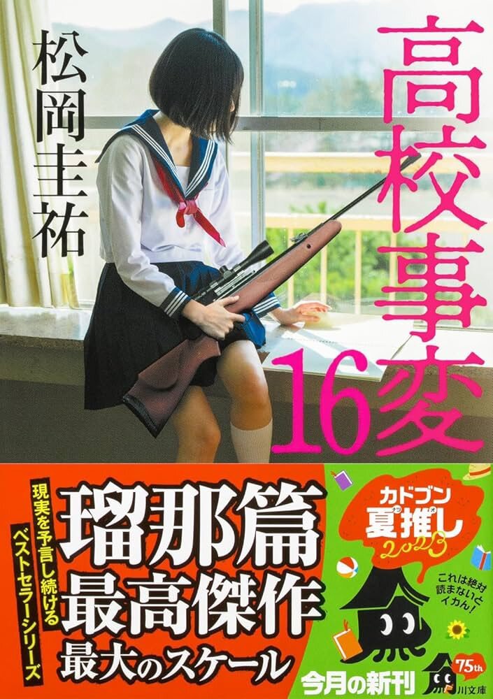 >政治が混乱すれば秩序はたちまち崩壊する。焦った政治家がさらに状況を悪化させ、国内情勢は泥沼化の一途をたどる。事情を知らない若者たちが国の将来のためとじつつ、兵士として最前線に駆りだされる。人は容易に殺し合う 高校事変18 令和中野学校のあらすじでもある。 #令和中野学校 #松岡圭祐 pic.x.com/VlrWS948pP