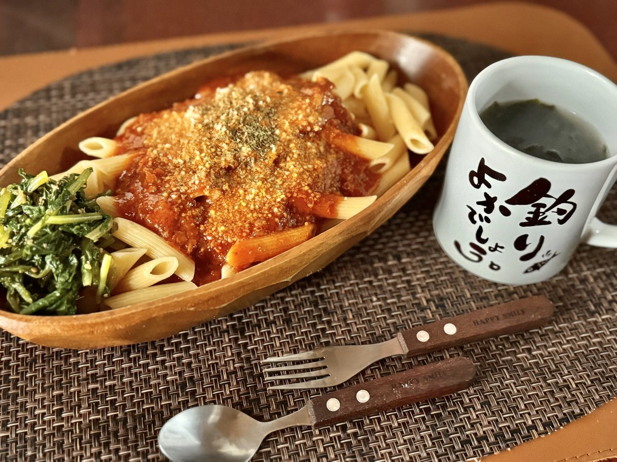 #今日の昼ご飯 #令和7年11月12日 最近は肌寒くなったせいで どーんと疲れやすい #ペンネのミートパスタ #大根菜のごま和え #ワカメスープ 飲みよか終わって 燃え尽き症候群っぽくなってるのも理由の一つ #RockinButterflysKitchen pic.x.com/1NR4ZaVQA9