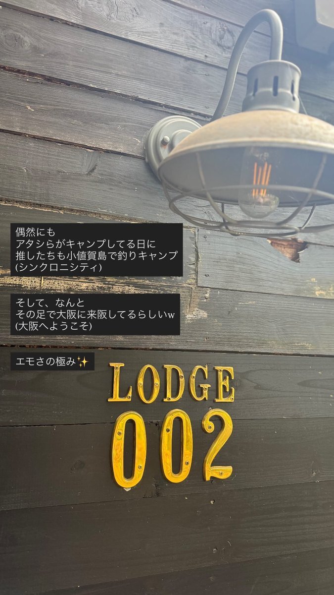 偶然にも アタシたちがキャンプしてる日と同日に 推したちも小値賀島で釣りキャンプ (シンクロニシティ) そして日常に戻るべく自宅に戻った時刻あたりに 推したちはその足で大阪に来阪したらしいw (大阪へようこそ) エモさの極み✨ #令和7年11月3日 pic.x.com/ABLdoG4j55