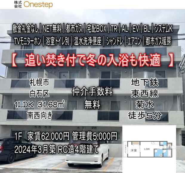 追い焚き付で冬の入浴も快適! 敷金礼金なし・都市ガス・EV・BL・浴室トイレ別・都市ガス暖房など人気条件が充実! 札幌市豊平区豊平4条1丁目 地下鉄東西線 菊水駅 徒歩9分 物件詳細 onestep-baibai.co.jp/chintai/detail… #仲介手数料無料 #札幌賃貸 #札幌部屋探し #札幌物件探し #札幌不動産 #札幌転勤 pic.x.com/uH2VzCk5lx