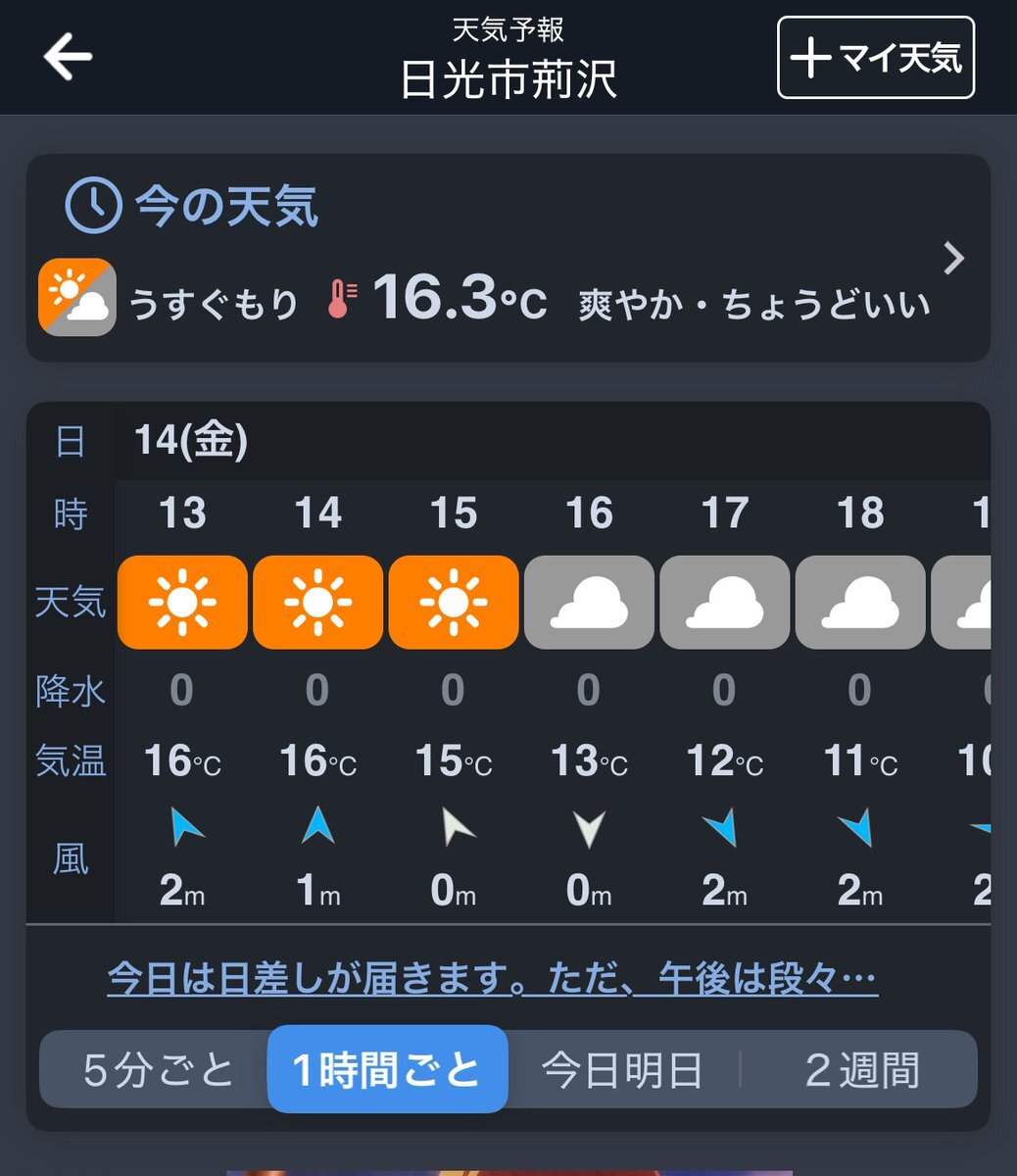 こんにちさめ~🦈 【今日の #日光 】⛅ 最高16℃ / 最低5℃ ひとことメモ📝 ・午後はだんだん雲が優勢☁️ ・朝は冷え込み強め、上着必須! ・日中は日差しあって過ごしやすい気温に🌤 穏やかな金曜日になりますように✨ #企業公式が地元の天気を言い合う pic.x.com/5bSUwA5SuC