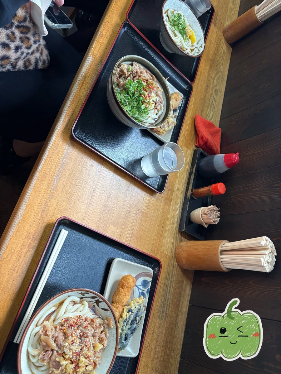 おつミネ〜(峰) ぴーまんちゃん🫑 本日❷投稿目❗️📮 お昼は🍅🍊🫑ちゃんで会社近くの #いわのやうどん へ😎 🍊ちゃんは天ぷらは我慢したようです😆🤭 最近ハマってる #肉ぶっかけうどん 🫵🫶 この甘いお肉の味付けがたまらん…🙂↕️💘 #企業公式が地元の天気を言い合う #企業公式つぶやき部 pic.x.com/LyNAP3NMOi