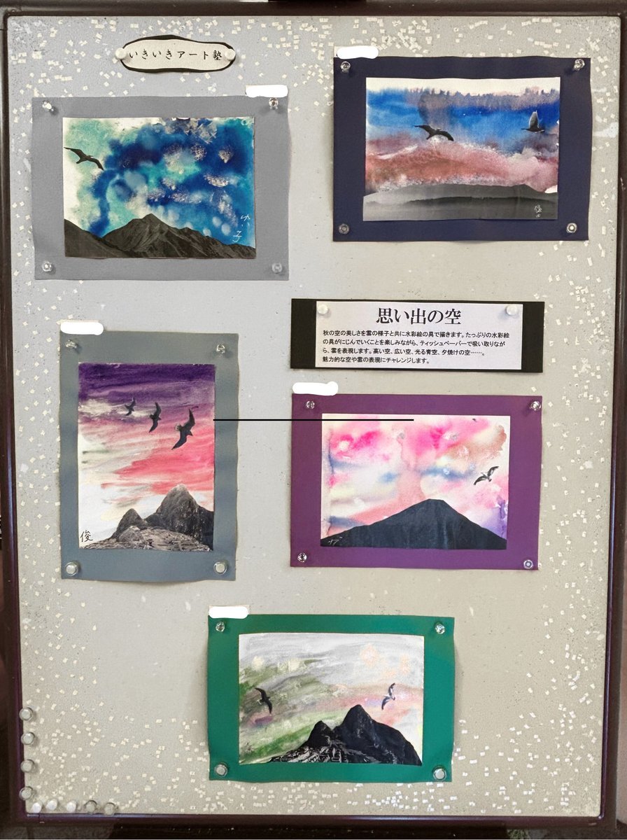 🎨いきいきアート塾「思い出の空」☁️ 秋の空を水彩で表現しました。 絵の具がにじむ瞬間を楽しみながら、雲を描きます。 心に残る“あの日の空“が広がります✨ #有料老人ホーム鶴の苑 #いきいきアート #水彩画 #秋の空 #介護 #企業公式フォロー祭り #企業公式相互フォロー pic.x.com/Rk7RiNdNz0