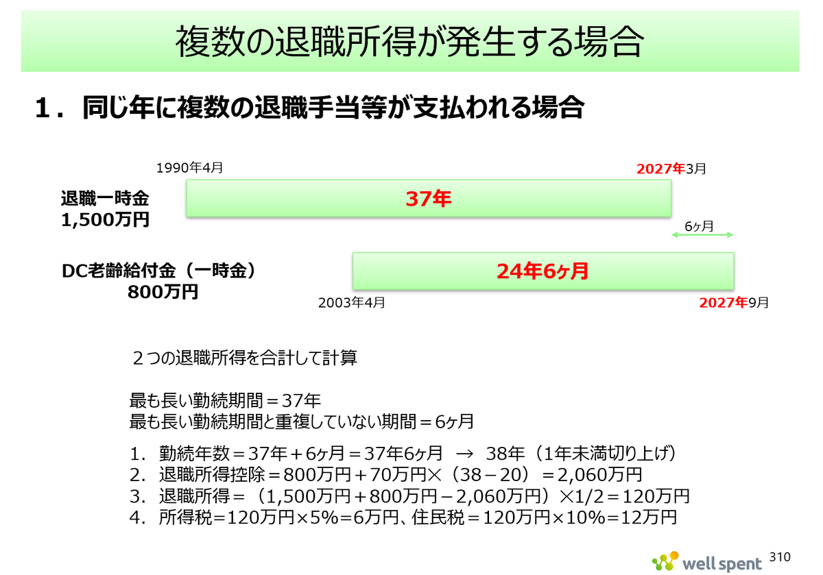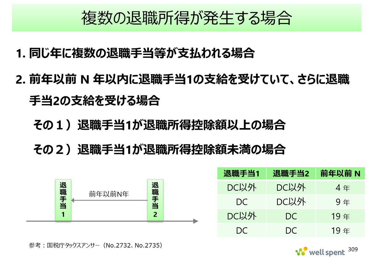 同じ年に複数の #退職所得 が発生する場合の計算は比較的シンプルです。 図のように、#退職一時金、#企業型確定拠出年金 や #iDeCo の #DC老齢給付金(#一時金)を同じ年に受け取る場合、#退職所得控除 は重複していない部分を足して計算する形となります。 pic.x.com/G5xSIhXDwc