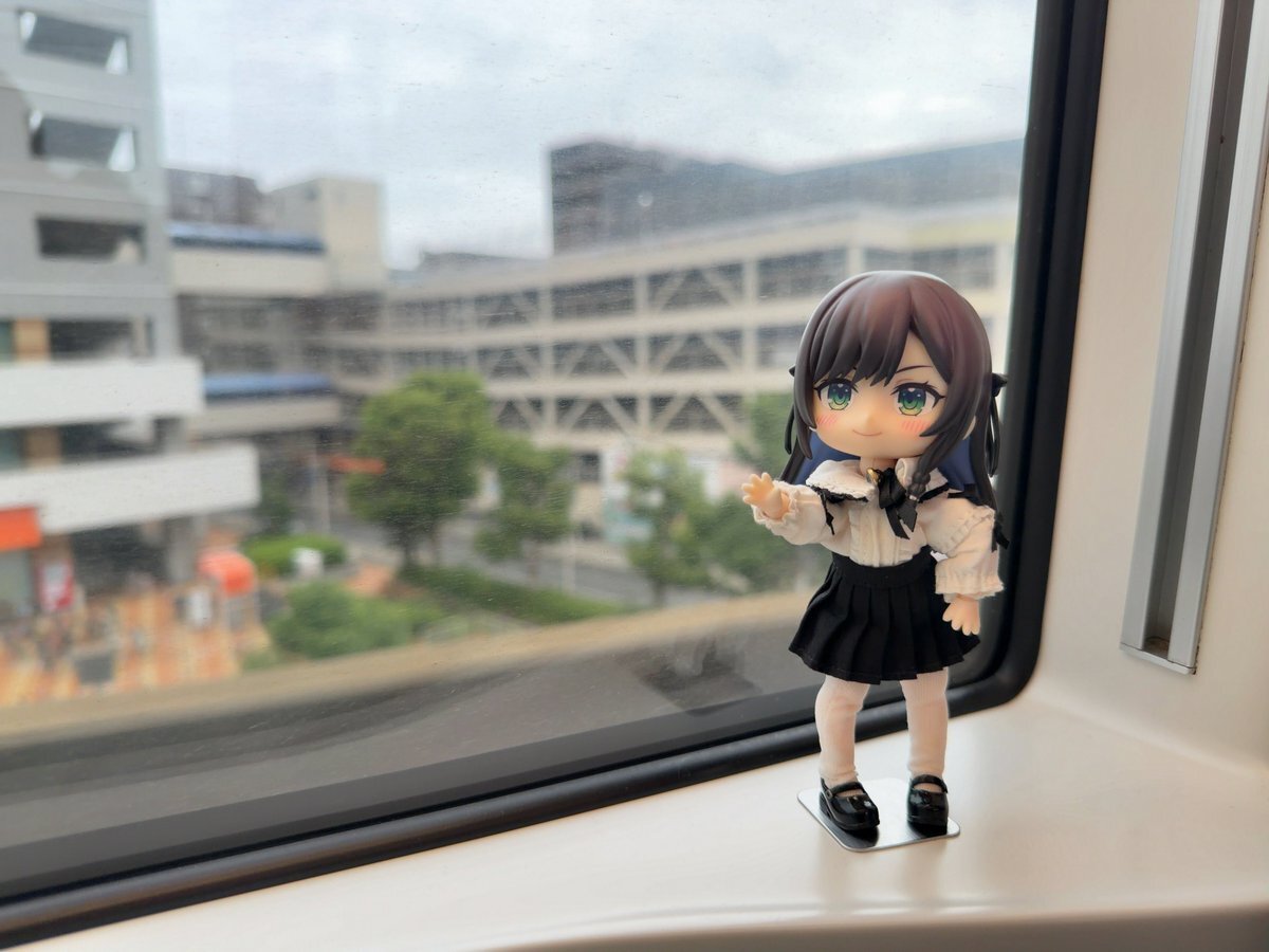 アリナさんお休みを満喫してる🤭 ア<撮って〜 り<オッケ〜( ˘꒳˘ノ)ノ📸カシャー ア<いい感じ、後ろから撮ってたのね 窓に張りついてる、アリナさん🤭 #日帰り旅行 #近鉄電車 #特急ひのとり #マイアリナさんとお出掛け x.com/dream_ryu86/st…