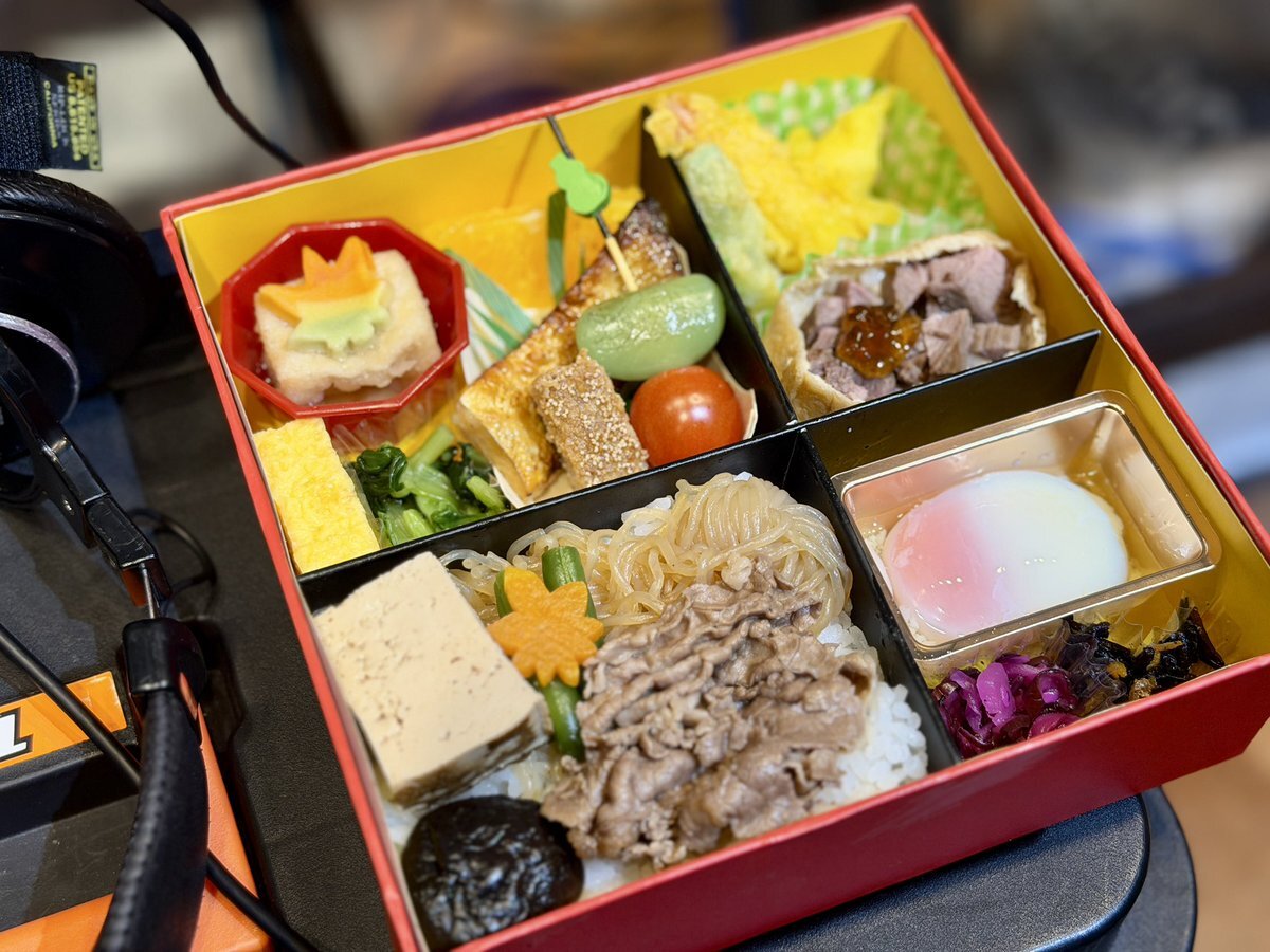 こんな高級そうなロケ弁、いただいていいんですか⁉️ え、いいの⁉️ 🙏🥹✨ #scatmct #伊田淳 #撮影業務 #ロケ弁はやる気バフ pic.x.com/MdUBqnWLFT x.com/scat_ida/statu…
