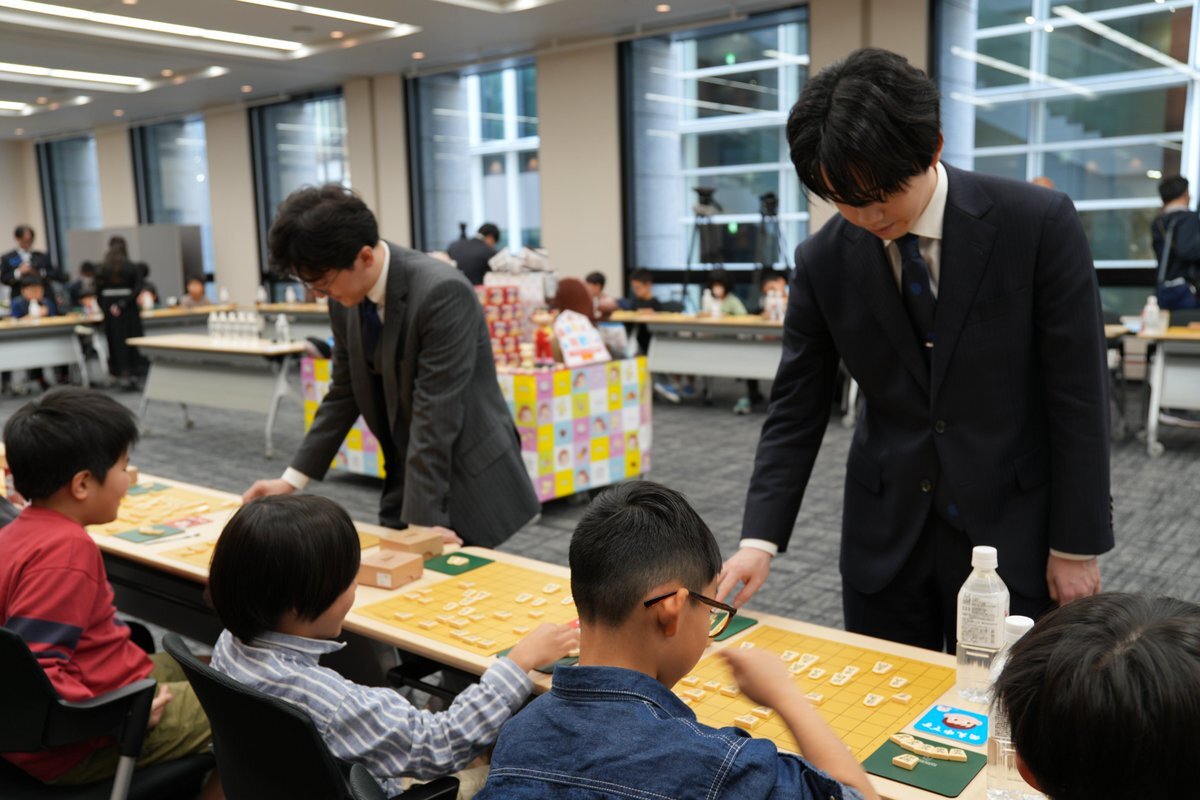 本日は「藤井聡太さんに挑戦!ペコちゃんこども将棋塾2025」にお邪魔しています! こんな豪華な指導対局あります?😮