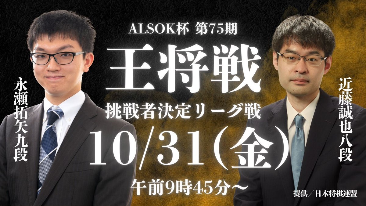 【ALSOK杯第75期 #王将戦 挑戦者決定リーグ戦】 #伊藤匠 叡王 VS #大橋貴洸 七段 ALSOK杯第75期王将戦挑戦者決定リーグ戦 伊藤匠叡王VS大橋貴洸七段戦が、10月31日(金)に東京・将棋会館で行われます。 buff.ly/0oAlKs3