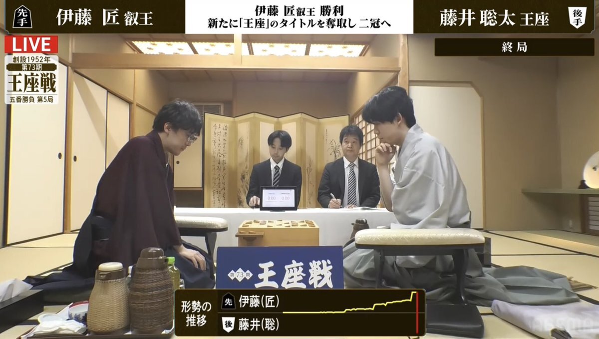 #伊藤匠二冠 誕生しました!!! おふたりとも本当にお疲れ様でした。 素晴らしい対局をありがとうございました! 今日はもう何も言葉が出てきません、、 ただただ感動でした。あとの良い感想は院長に任せることにします。笑 #王座戦 #将棋 pic.x.com/W6jMi3Tuei