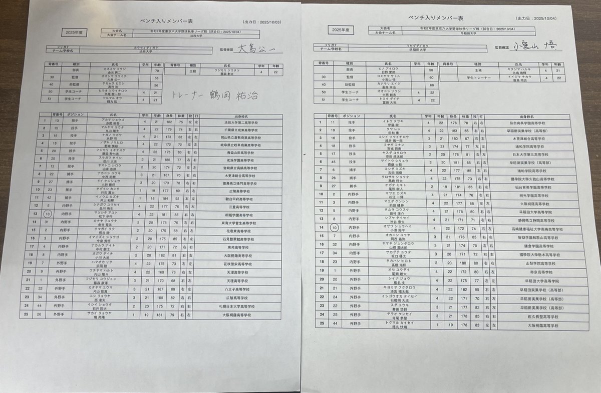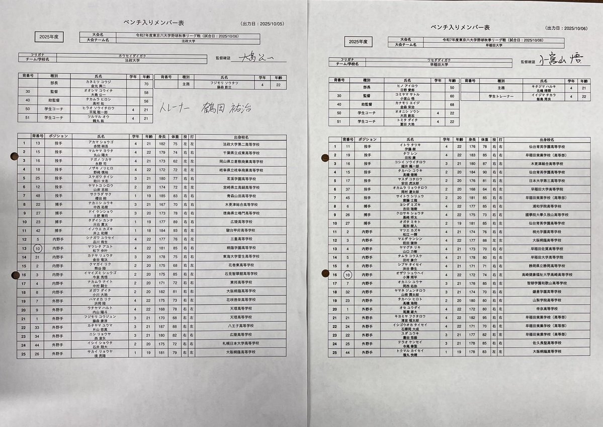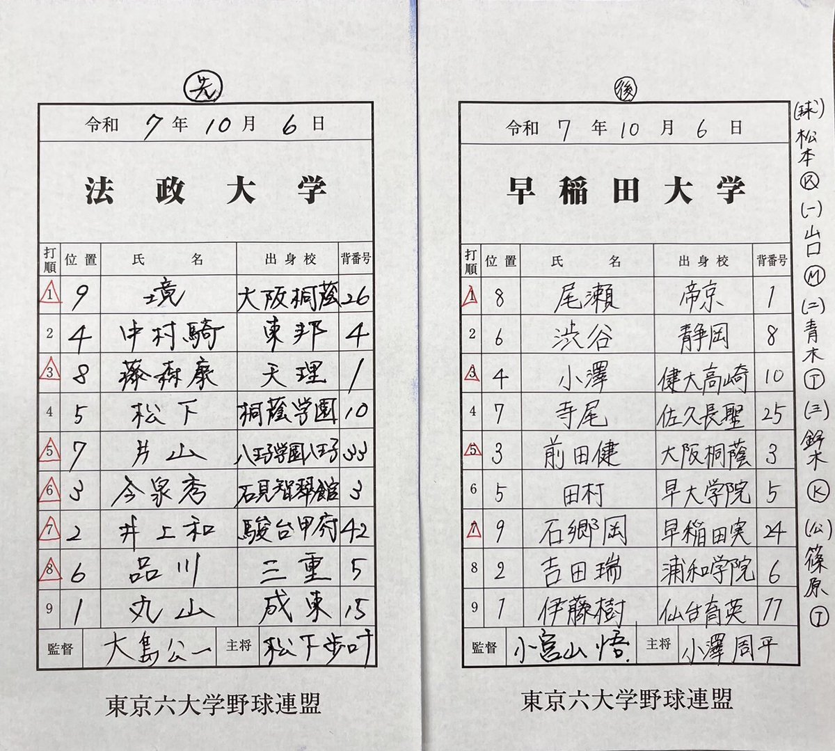 【法大 - 早大】 スタメン&ベンチ入りメンバー 法大は #丸山陽太(④成東)、早大は #伊藤樹(④仙台育英)が先発のマウンドへ! 📺LIVE視聴はこちら📺 sportsbull.jp/big6tv/live/20… #big6tv #六大学野球 #法政 #早稲田 pic.x.com/gi43jtu6HB
