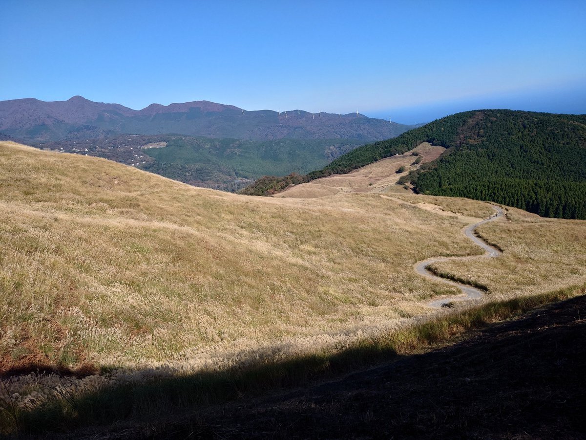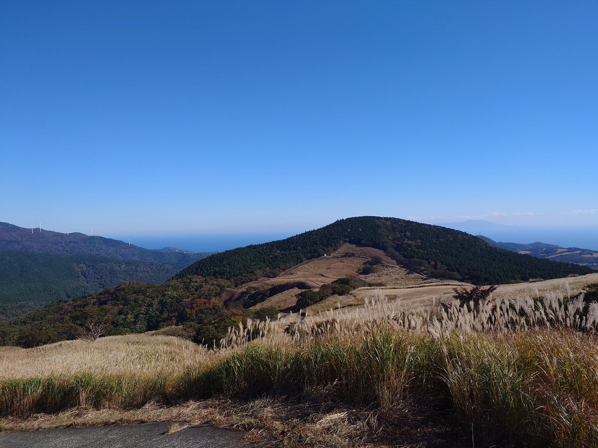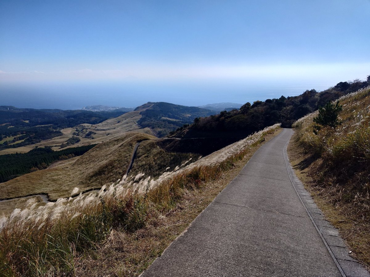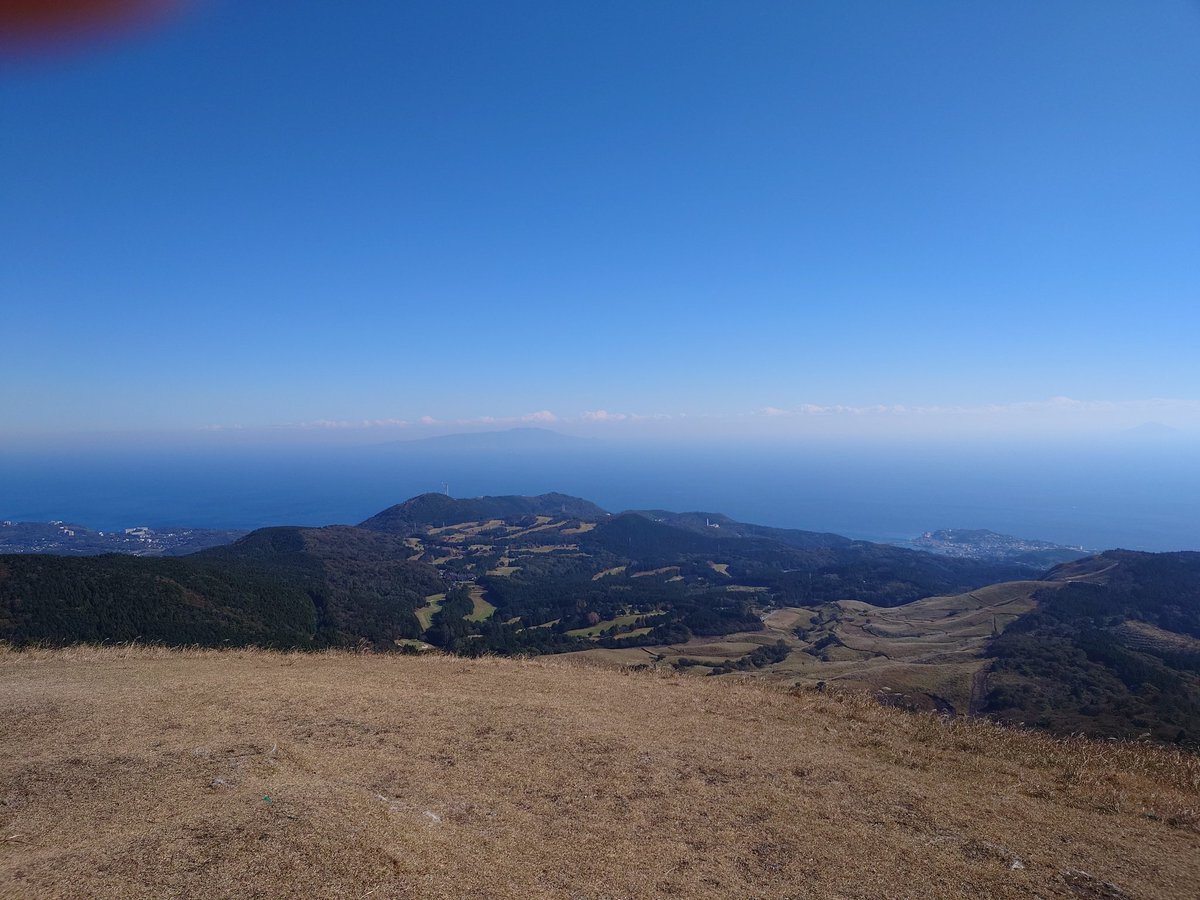 #伊豆稲取 #細野高原 山頂到着…傾斜が…エグい…( ˙ཫ˙ )グフッ 展望スポットからの景色はもう素晴らしい。高笑いしたくなる気持ちもわかる(ง `▽´)╯ハッハッハ!! ちょっとケムってるから伊豆諸島は霞んでるね。 それと、山頂付近は電波なかったわね… pic.x.com/b54a57qcLr