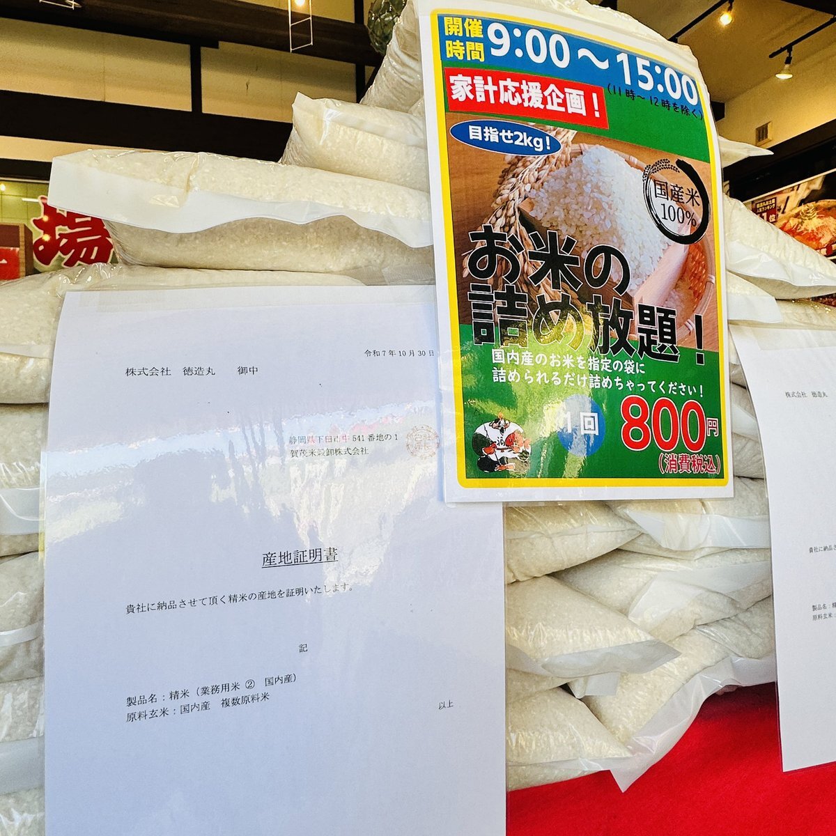 💫大好評! 「2キロに挑戦!お米 #詰め放題 」 税込800円!の大特価! #国産米を1トン ご用意いたしました🌾 👉 詳しくはコチラです♪ instagram.com/p/DRD13Lmk2F6/… #徳造丸 #大感謝祭 #伊豆稲取 pic.x.com/bV0ztrSTB5